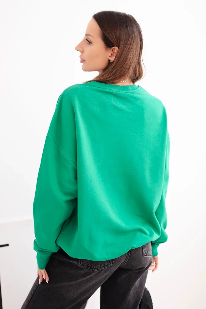 Изберете комфорт и вечен стил с нашия дамски суитшърт с кръгло деколте. Изработен от 100% висококачествен памук, този модел гарантира комфорт през целия ден. По-свободната оверсайз кройка и класическата кройка правят този суитшърт идеален както за ежедневни, така и за по-небрежни тоалети. Можете да го носите с дънки, клинове или поли – ще изглежда модерен във всяка версия!