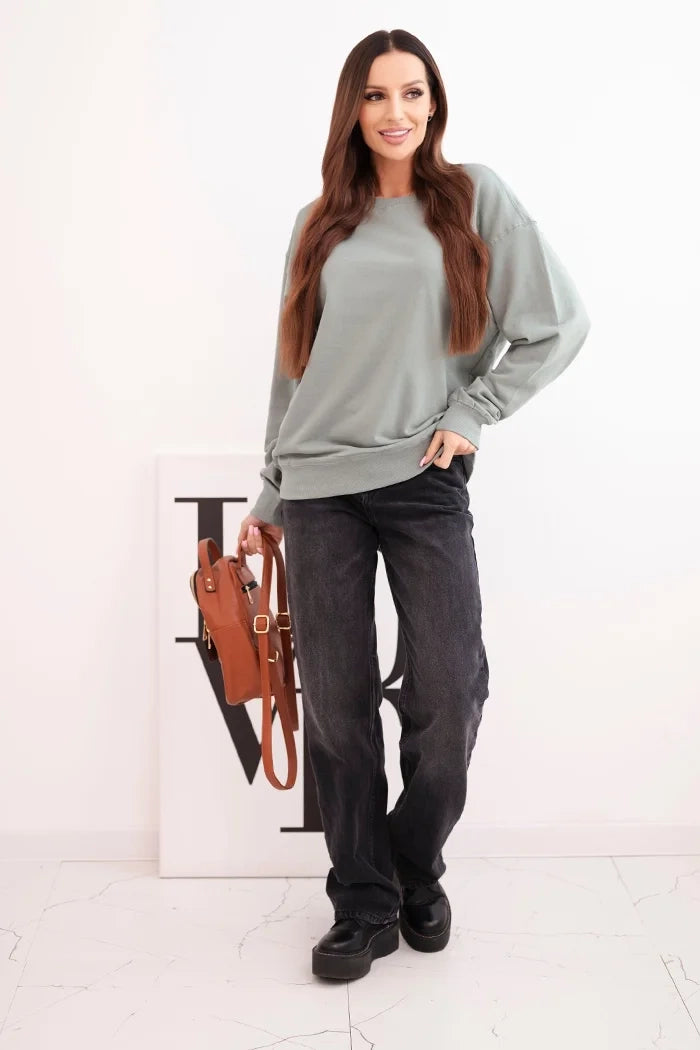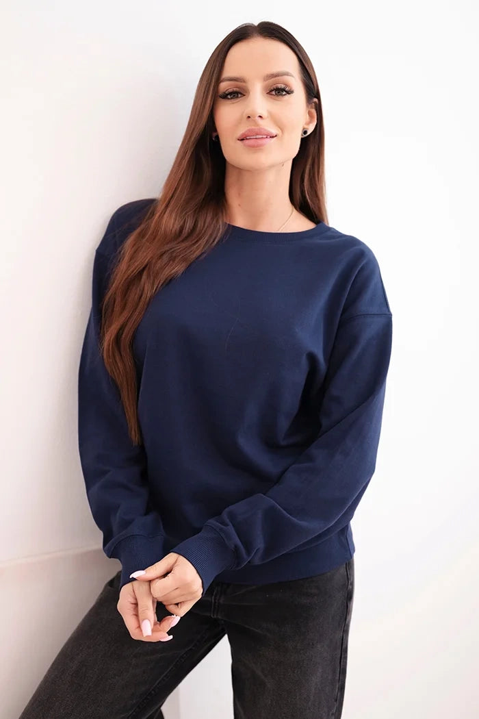 Дамски основен памучен суитшърт с кръгло деколте HIT3