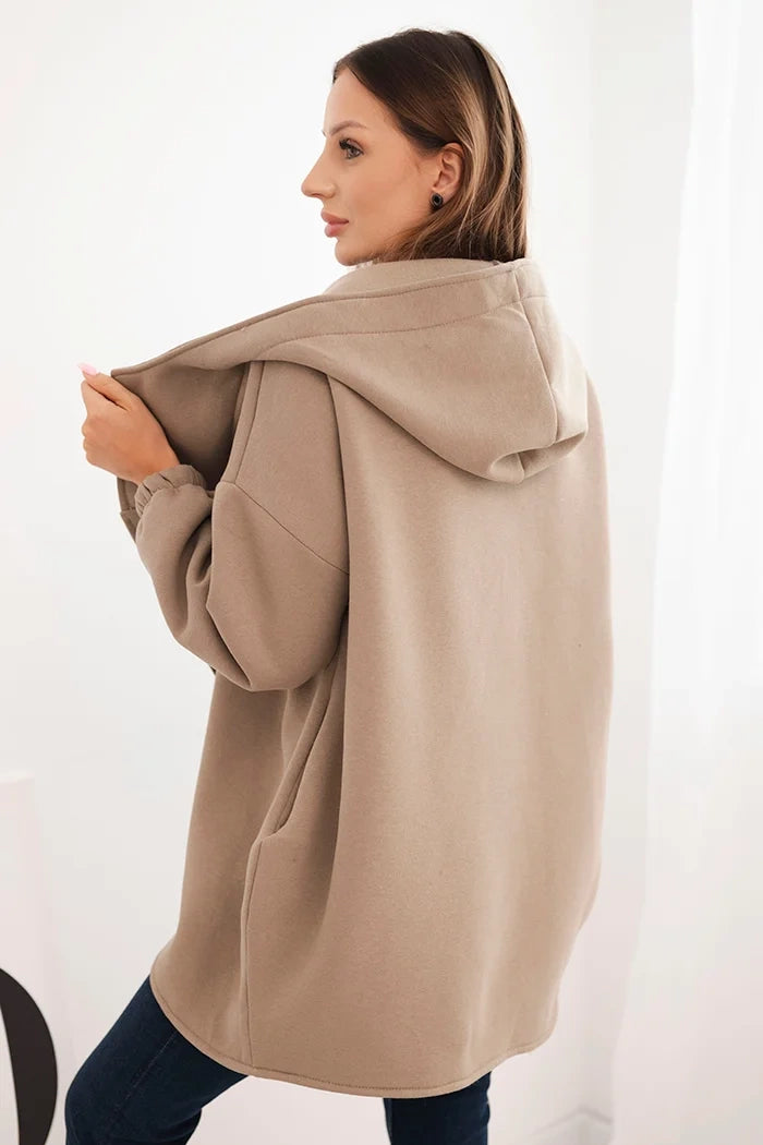 Изработен от мека памучна материя с изолация от вътрешната страна, той осигурява топлинен комфорт и свобода на движение. Качулката предпазва от вятъра, а дългите ръкави с леки маншети добавят функционалност. Перфектен за ежедневни, ежедневни тоалети, разходки и дейности на открито.