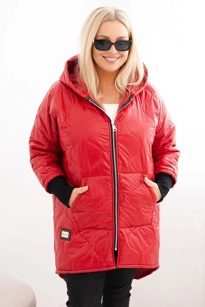 Топло и стилно дамско яке Plus Size с модерна, асиметрична кройка и удължен гръб. Моделът е изработен от капитониран материал, идеален за по-хладните дни. Разполага с практична качулка, цип по цялата дължина и удобни маншети. Подхожда чудесно на ежедневните тоалети – както с панталони, така и с клинове.
