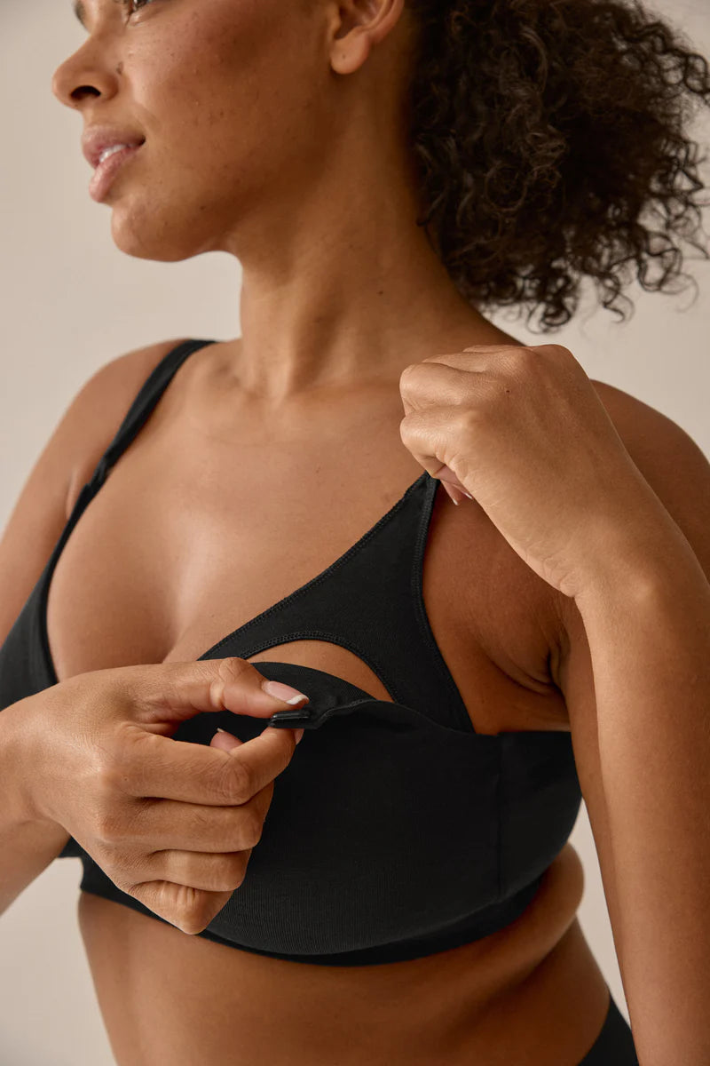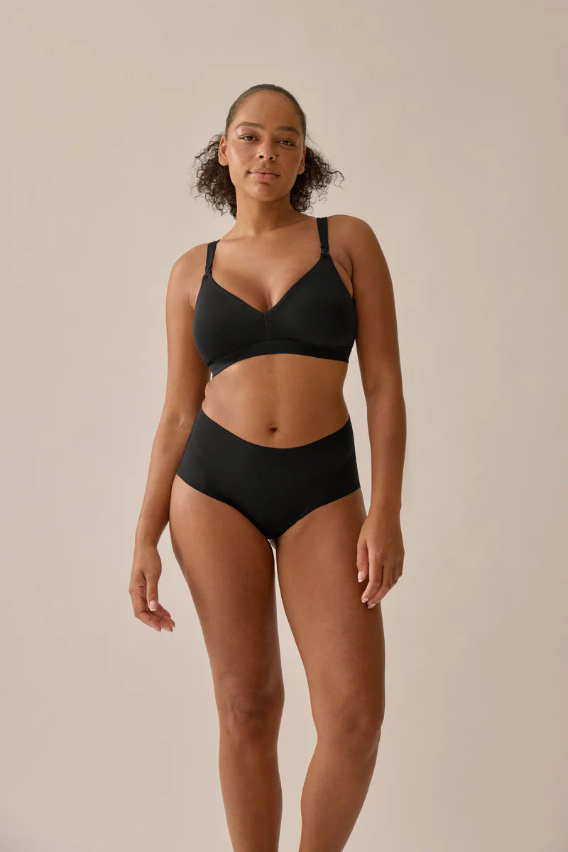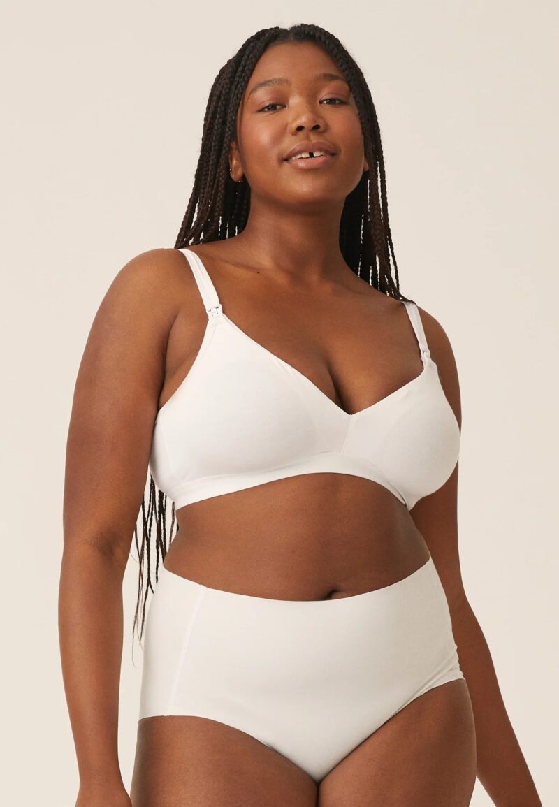 Нашият предварително оформен сутиен за кърмене от колекцията Basics е перфектният спътник за новите майки. Като сутиен за кърмене, той не само улеснява достъпа до гърдите, но и предлага оптимална опора с широките си, регулируеми презрамки, високо изрязани страни и гръб, както и широка лента под бюста – дори за големи размери до размер на чашката G!