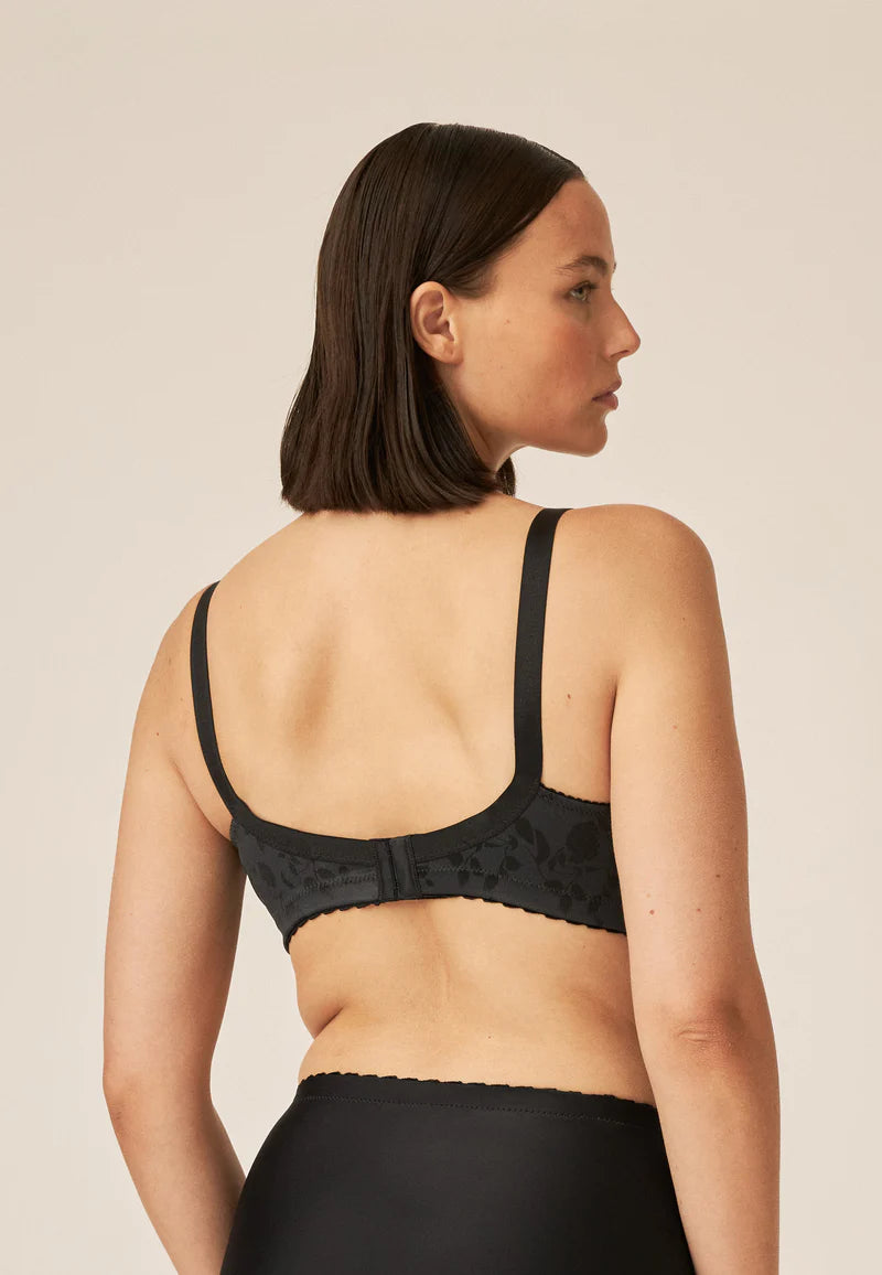 Широките презрамки осигуряват леко прилягане и се регулират отпред. Напълно еластичната, безшевна чашка приляга като втора кожа и е почти невидима под дрехите.
