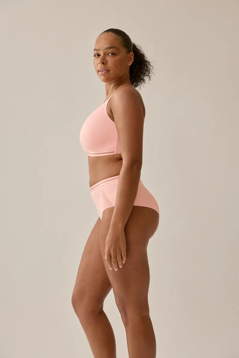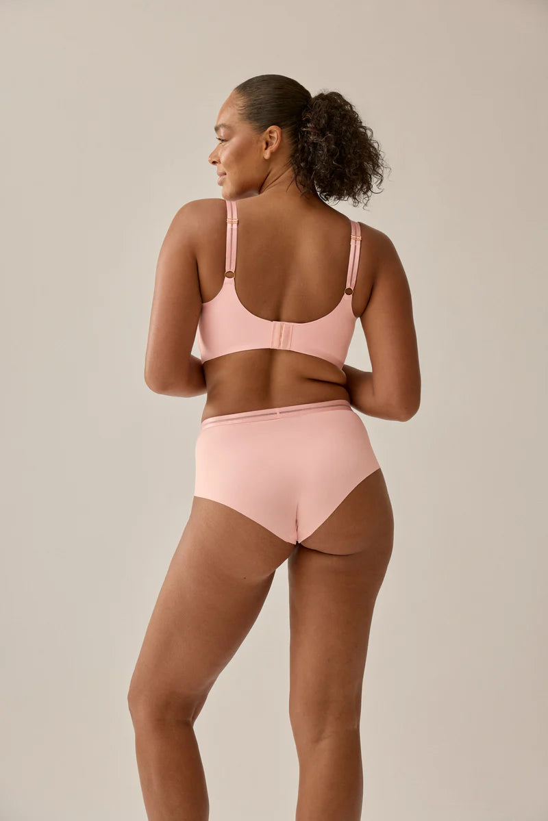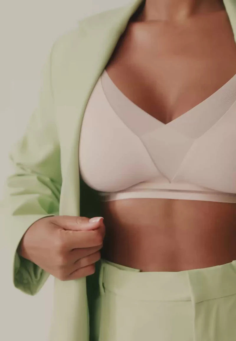 Мек сутиен без чашки и банели. Иновативна 4-посочно разтеглива материя. Гладка външна материя. Безшевни чашки. Съвет: Поръчайте един размер по-малка чашка.