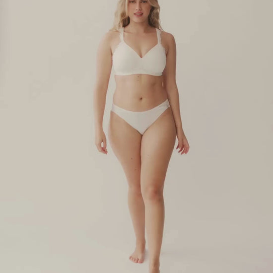 Без банели или шевове в чашката. С женствени дантелени детайли. Супер мек материал и чашка. Високите странични панели скриват излишните мазнини. Меки, подплатени, безшевни поддържащи презрамки. Дантела, сертифицирана от GRS.