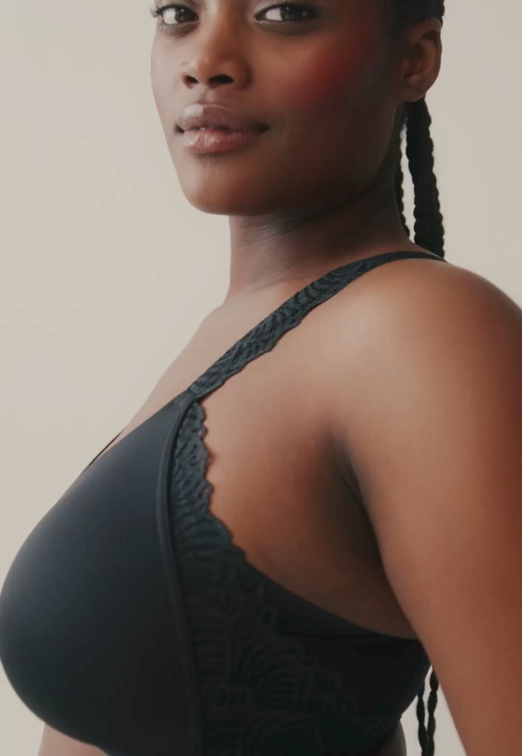 Сутиен, който може всичко? О, да! Side Smoother x Friday Lace е вашият нов герой за ежедневието – с ефект на странично изглаждане. Той съчетава удобните свойства на нашия Side Smoother с красивата, рециклирана дантела от серията Friday – и готово, комфорт без банели с нотка дантела за онова допълнително нещо. Високите странични панели – нашите Smoothing Wings – прикриват малки издатини и ви предлагат допълнителен комфорт, нежно оформяйки силуета ви, докато меките Comfort Straps ви карат да се чувствате леки като перце. Специалната кройка на ластика под бюста и високият централен панел ви осигуряват опората, която очаквате от любимия си сутиен. А най-хубавото? Дантелата, сертифицирана от GRS, не само ви прави щастливи, но и околната среда. Сутиен, който изглежда добре, усеща се фантастично и може да прави всичко – точно като вас!