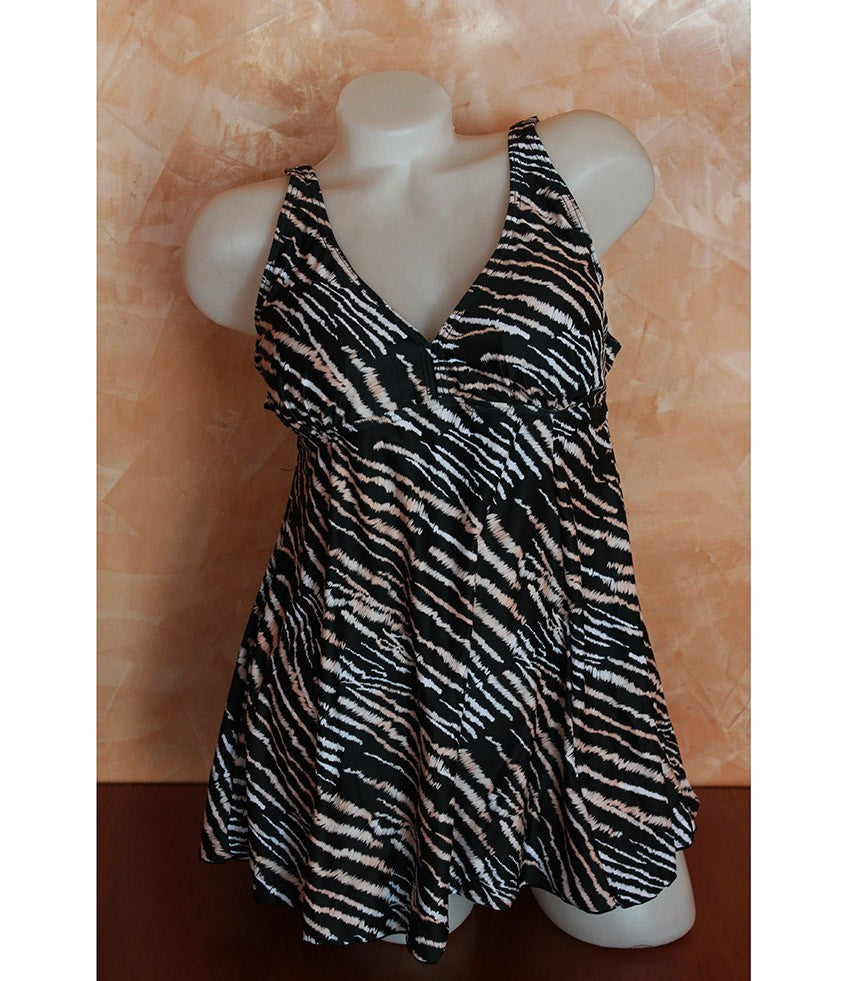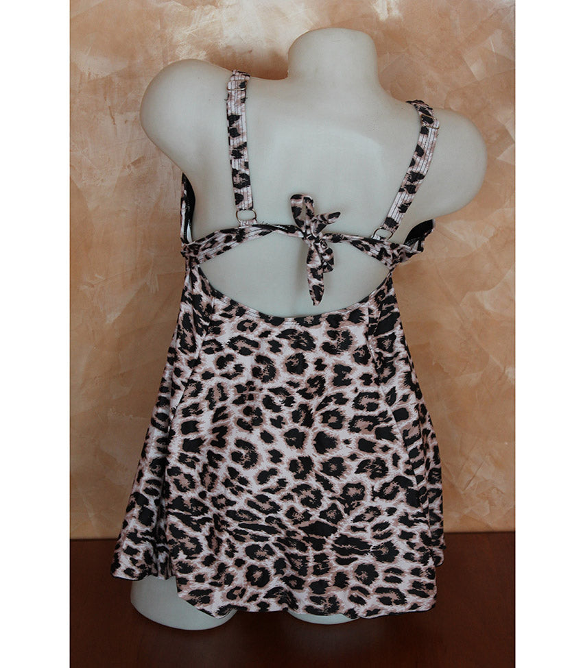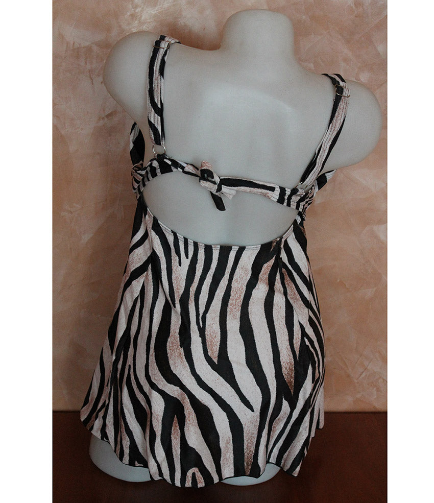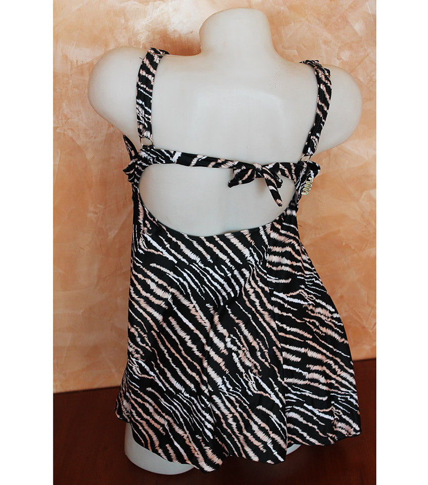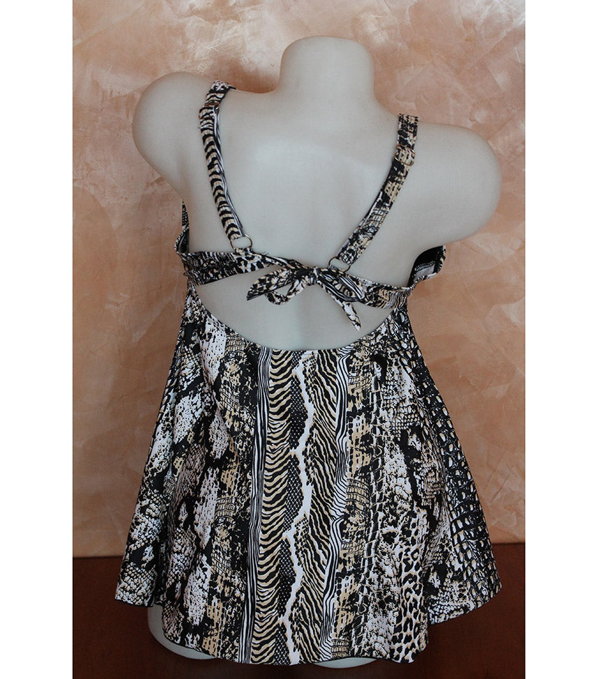 Бански тип танкини с дълбока бикина 86009. Горната част е с меки чаши и леки подложки. Отзад е със завързване. Долнището е черна дълбока бикина.