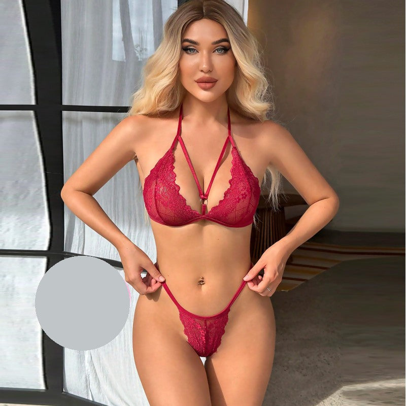 Бейбидол комплект от бралет с прашки NL-7016. Комплект от дантелен бралет сутиен и прашки. Халтер бралет сутиен с еластични презрамки.