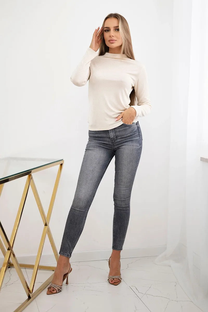 Блузата с декоративни кристали е уникална дреха, която придава блясък на всеки тоалет. Изработен от висококачествени материали, той съчетава елегантност с комфорт. Кристалите нежно украсяват блузата, създавайки ефектен акцент, който привлича вниманието и я прави идеален избор за специални поводи. Благодарение на универсалната си кройка, блузата с декоративни кристали се съчетава прекрасно както с елегантни панталони, така и с поли. Можете да го носите на партита, срещи или вечерни излизания, като винаги се чувствате стилни и уверени. Изберете тази блуза, за да добавите нотка блясък към тоалета си. Размерът е универсален и ще бъде подходящ за жени, носещи размери S, M или L.