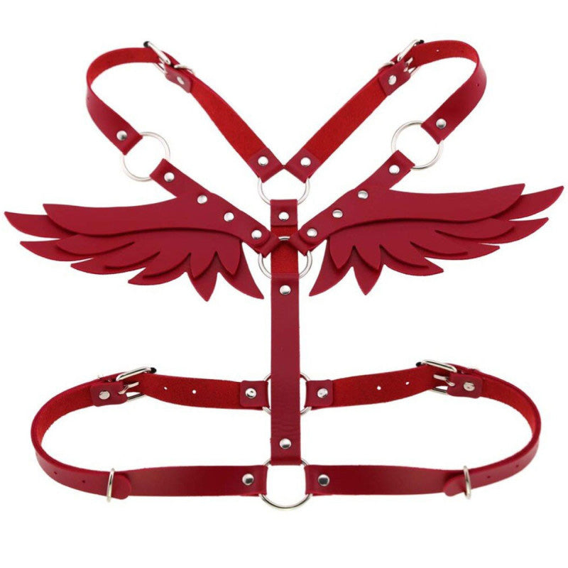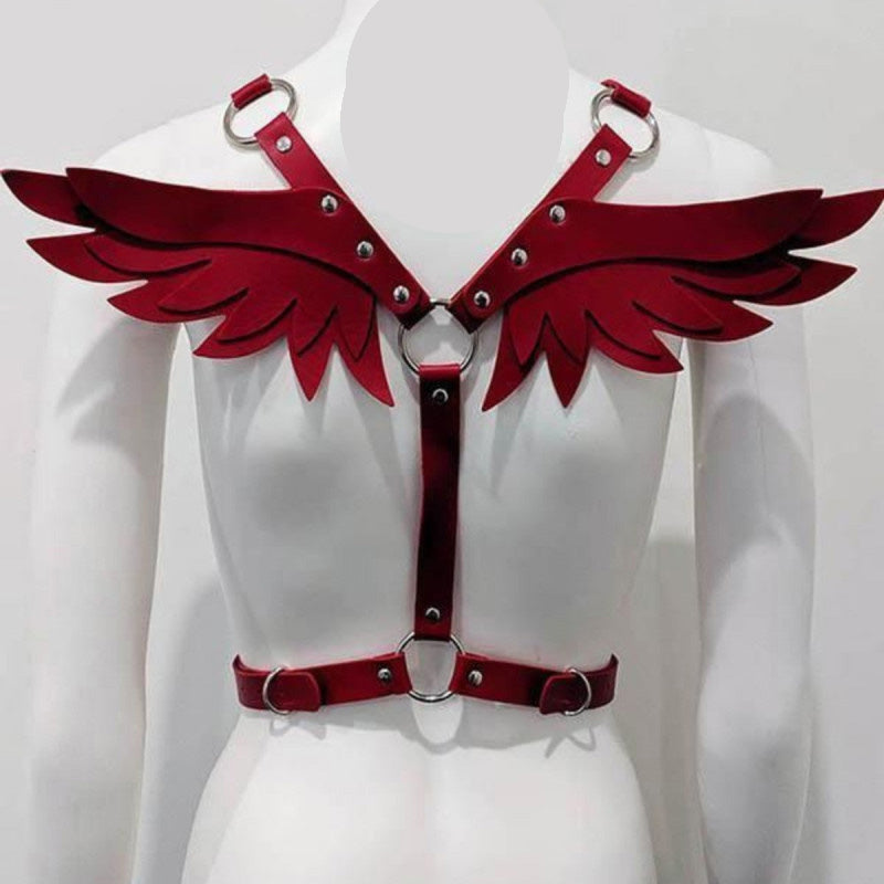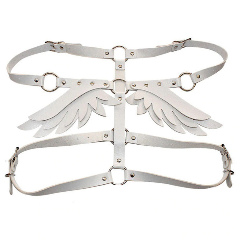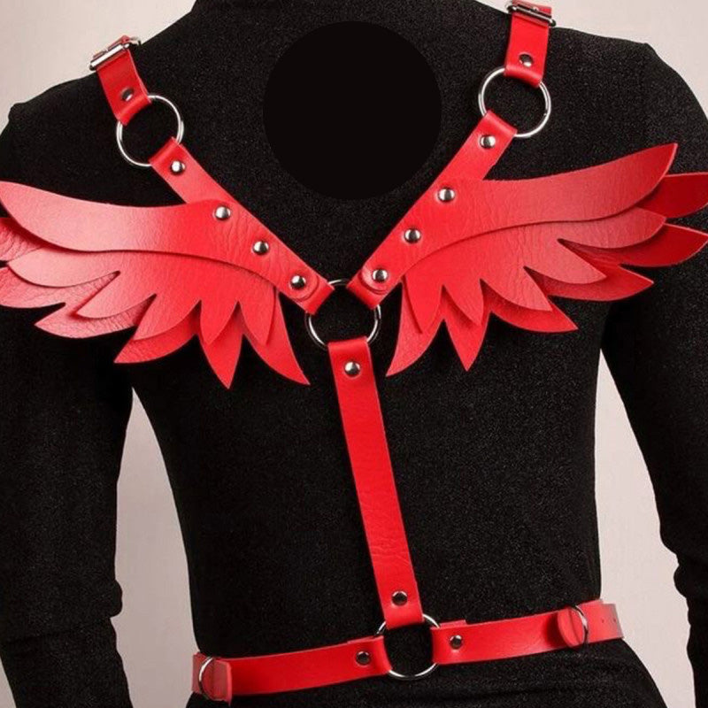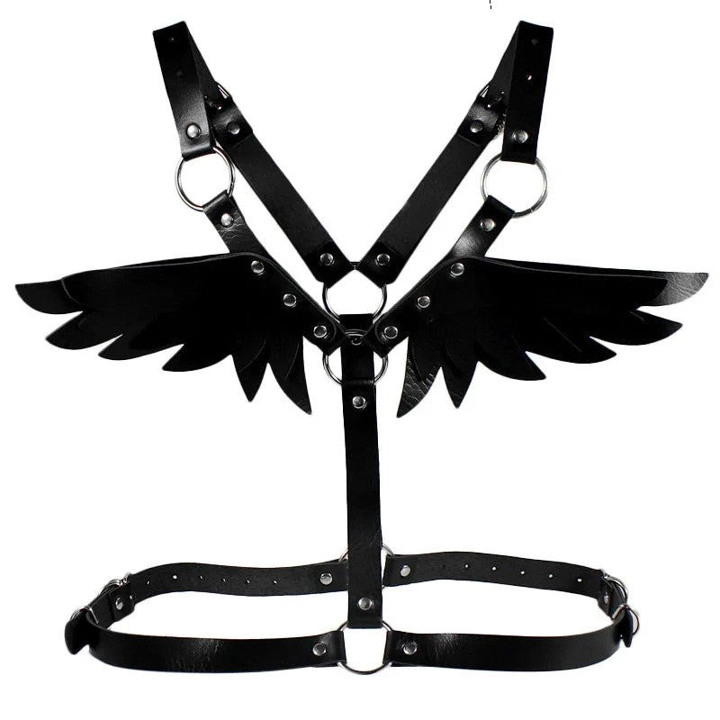 Черен харнес с крила AA-700893. Регулируем, изработен от висококачествена кожа.
