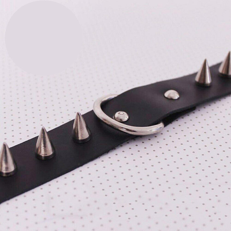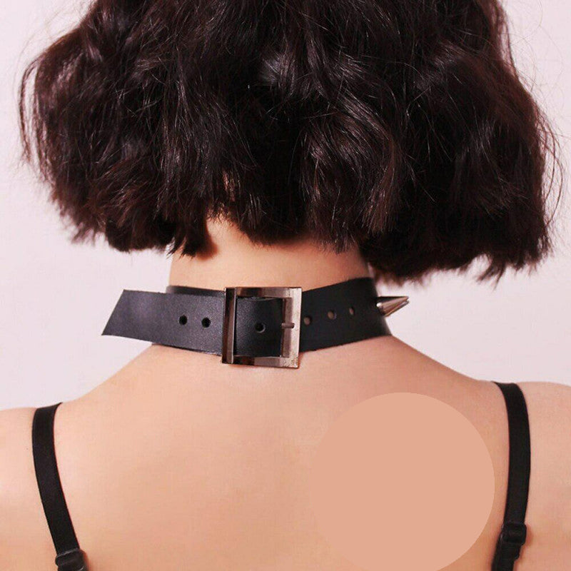 Черен кожен харнес чокър с шипове AA-026. Универсален размер, с регулиране на закопчаването.