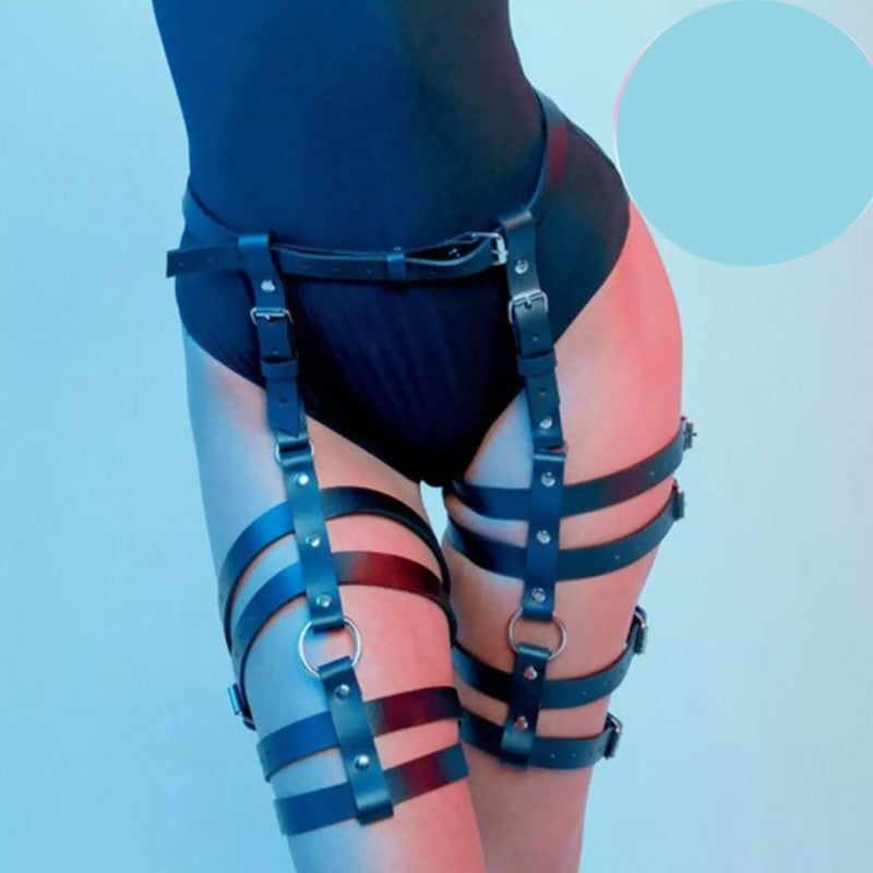 Черен кожен харнес долна част AA-054. Кожен харнес с регулиране от висококачествена еко кожа. Един размер – подходящ за S, M, L, XL.