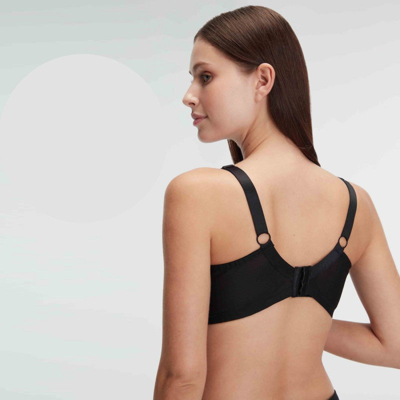 Черен сутиен с меки чаши и банели A-3788. Минимизиращ черен сутиен с банели, без подплънки и с меки чашки.