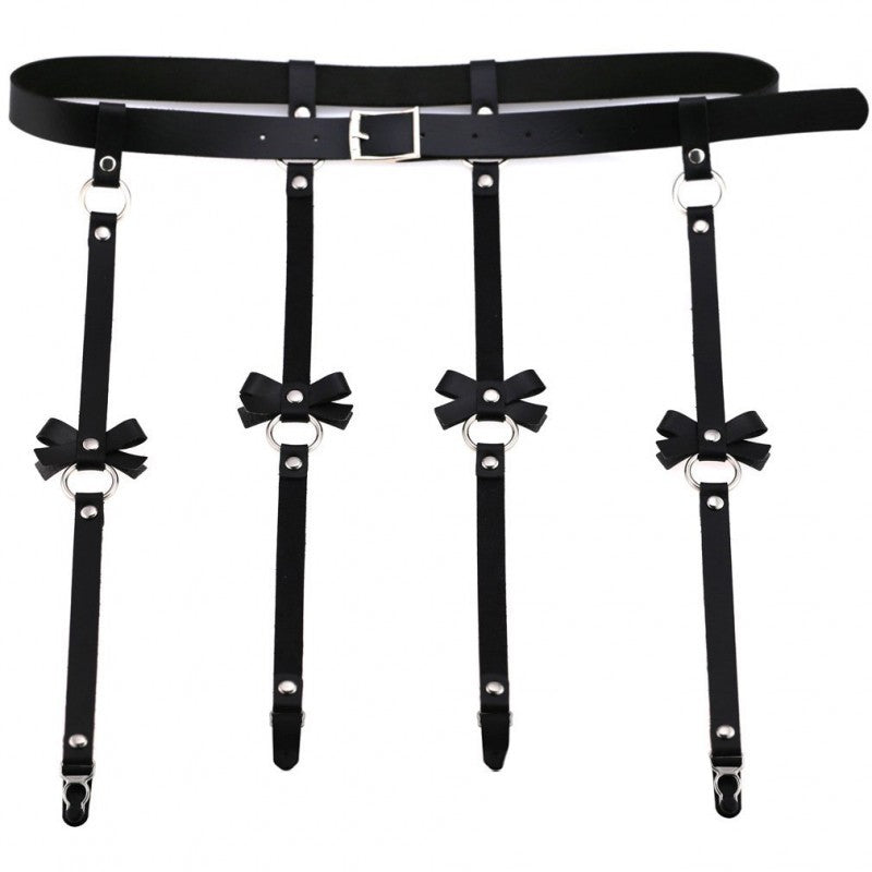 Черни кожени харнес жартиери AA-700456. Eдин размер – подходящ за S, M, L, XL.