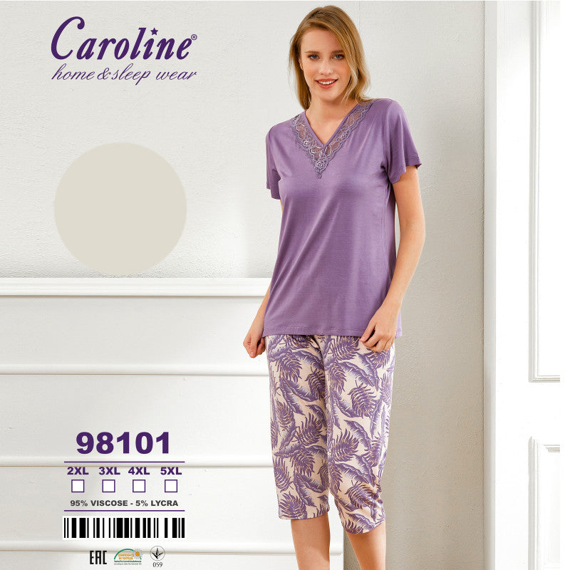 Дамска пижама от блуза с къс ръкав и 7/8 панталони 98101. Комплект от вискоза – мека и фина , приятна за тялото материя. Блуза с къс ръкав и 7/8 бермуди.