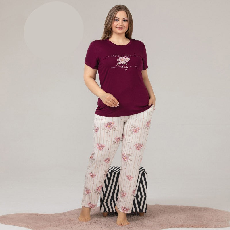 Дамска пижама с къс ръкав и дълъг панталон 10863