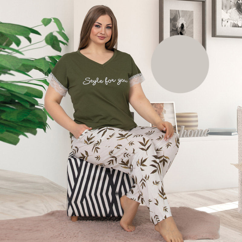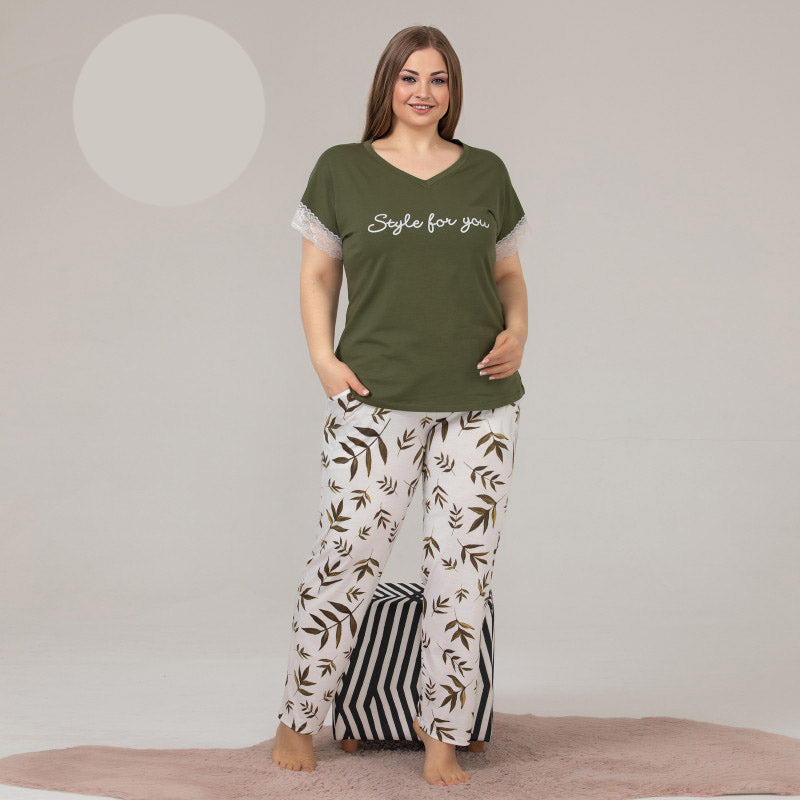 Дамска пижама с къс ръкав и панталон 10866