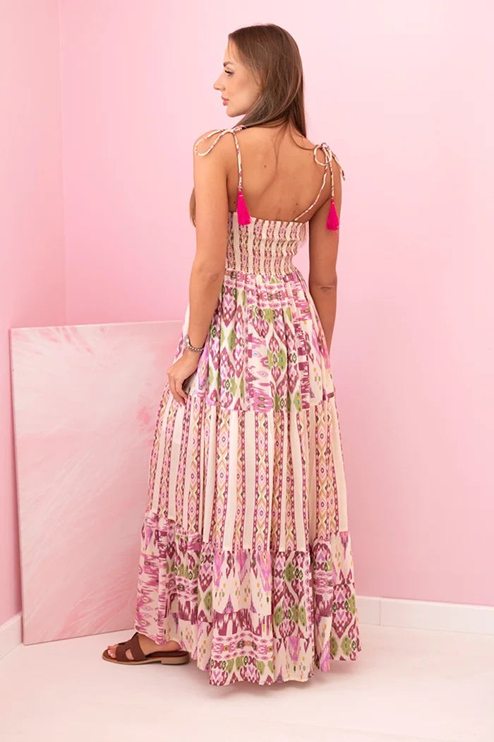 Дамска вискозна рокля с презрамки и ластик 1103.
