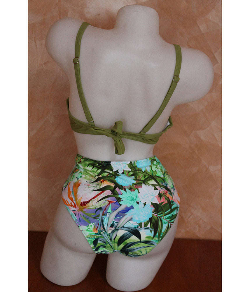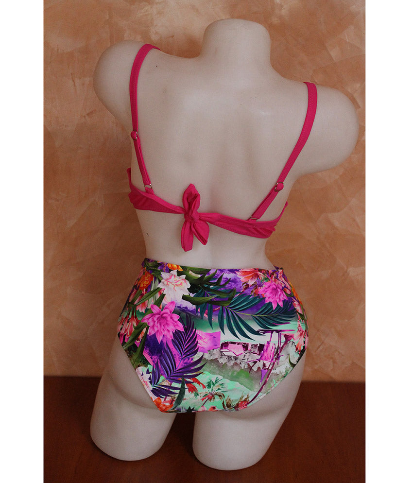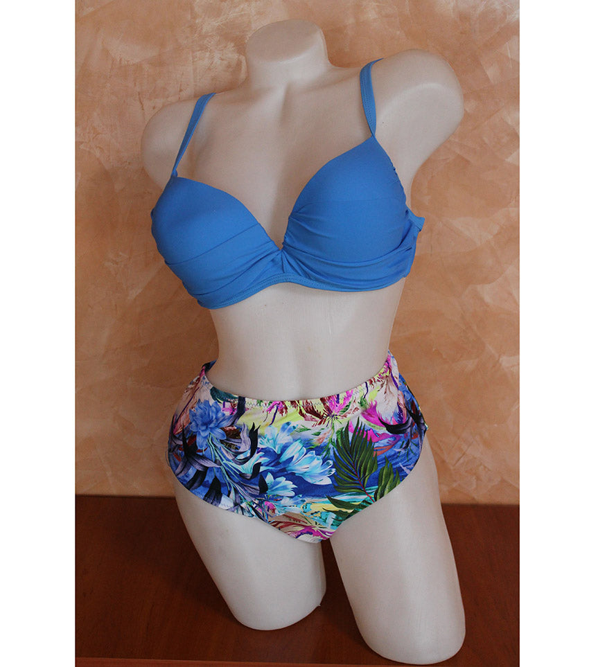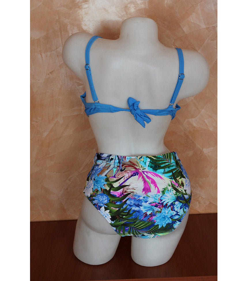 Дамски бански от две части 81371. Горнище с оформени чаши и завързване отзад. Дълбоко цветно долнище.