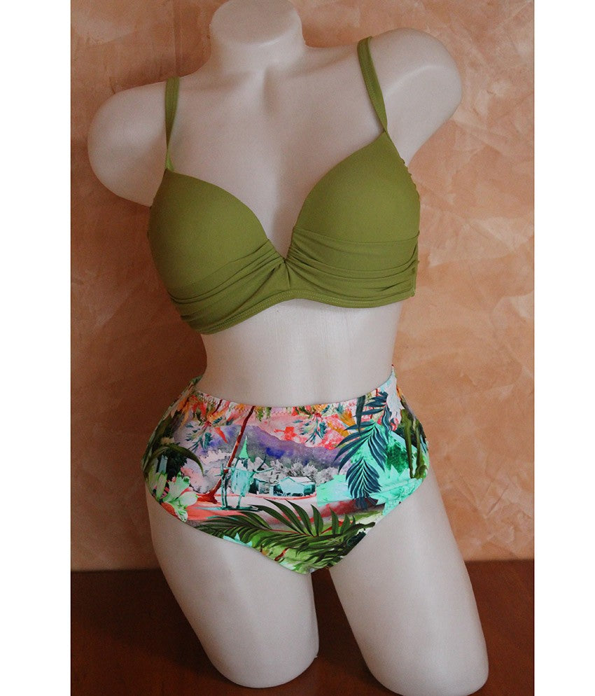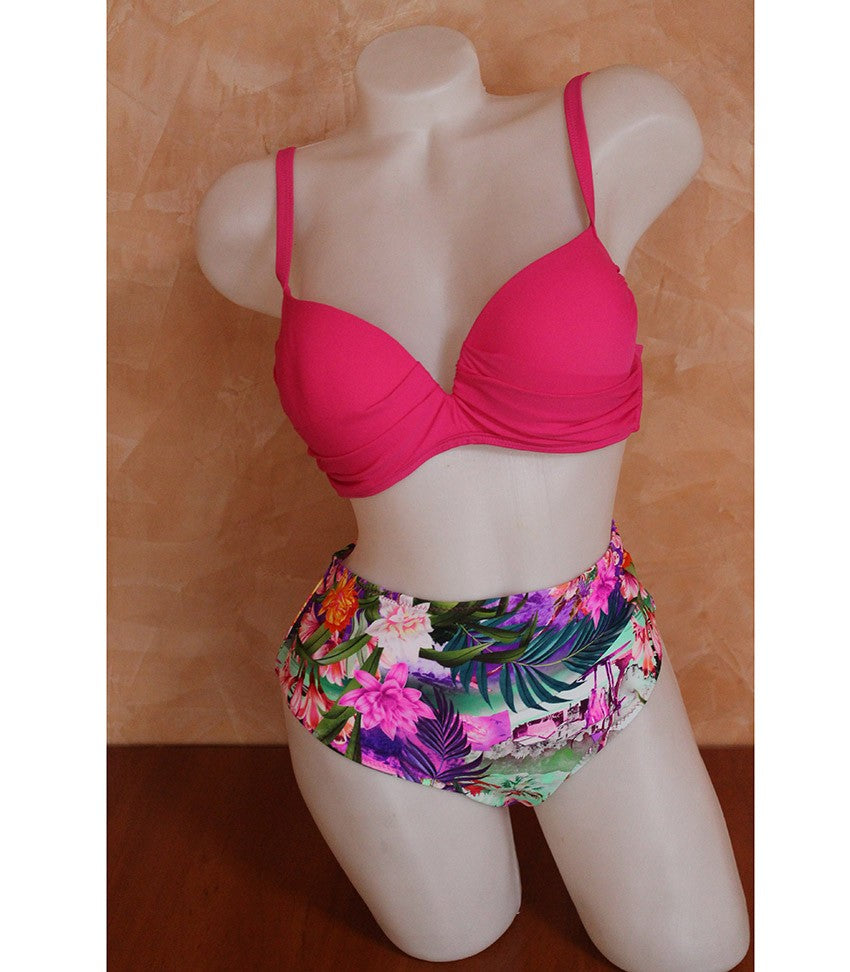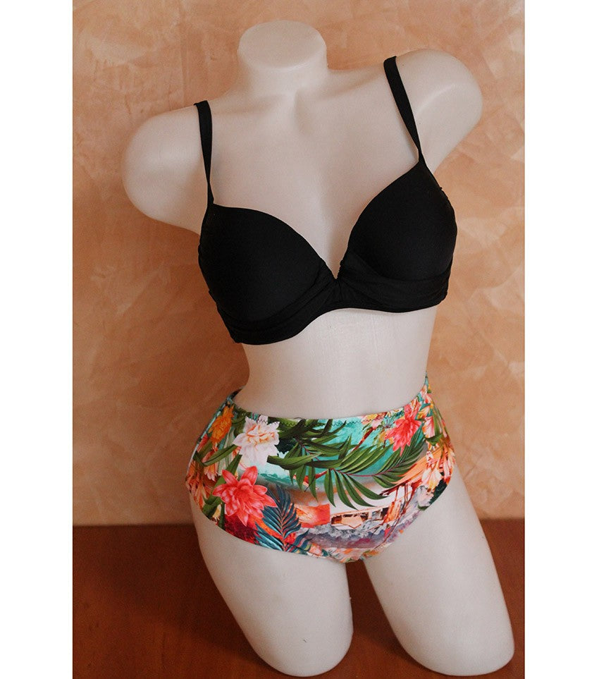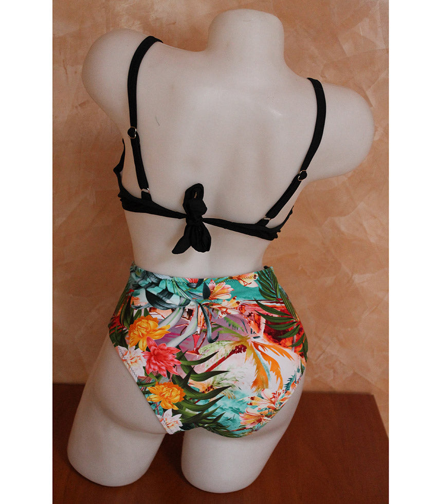 Дамски бански от две части 81371. Горнище с оформени чаши и завързване отзад. Дълбоко цветно долнище.