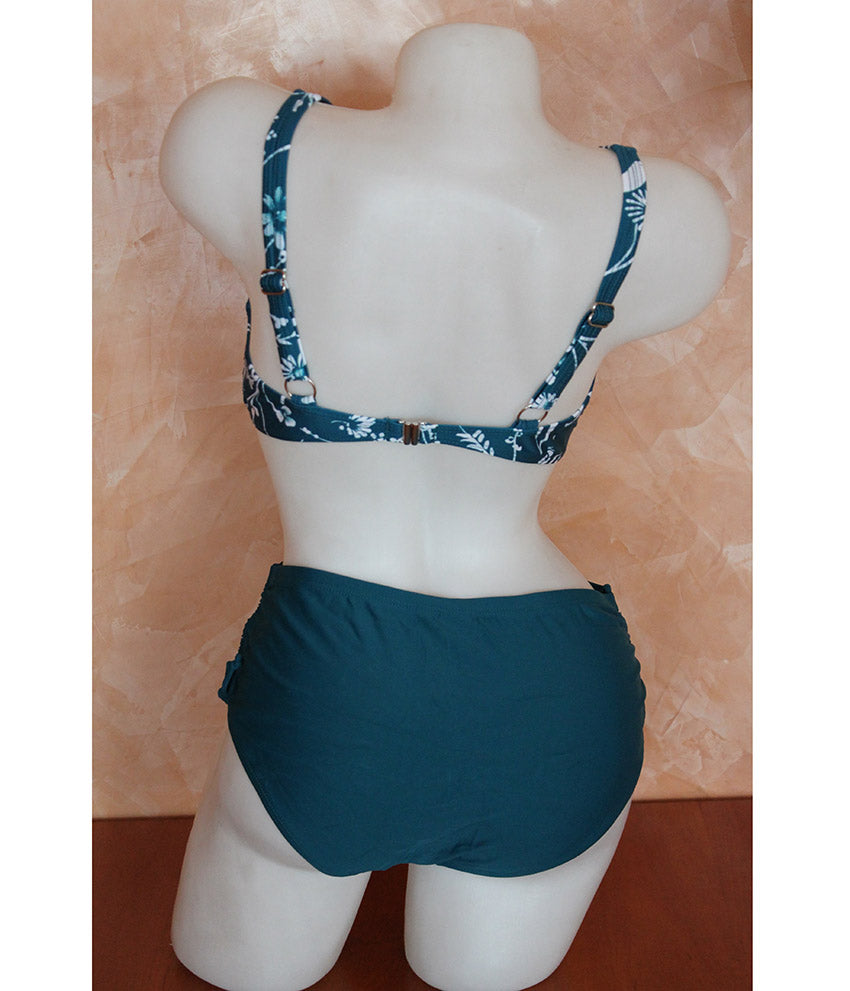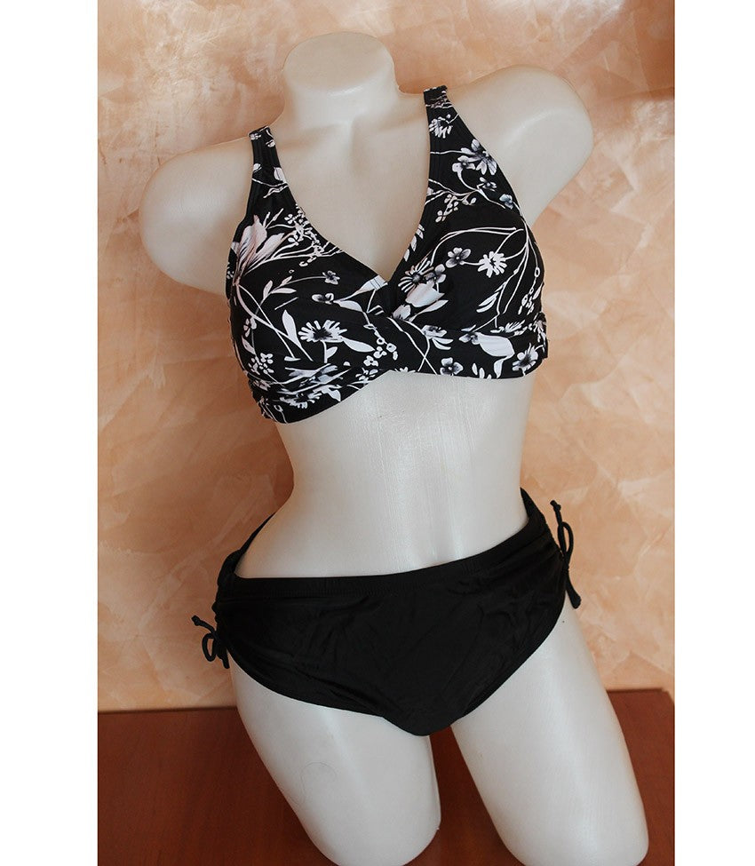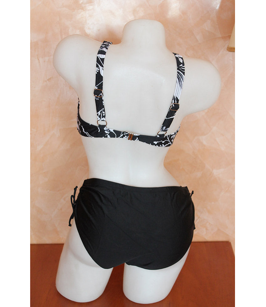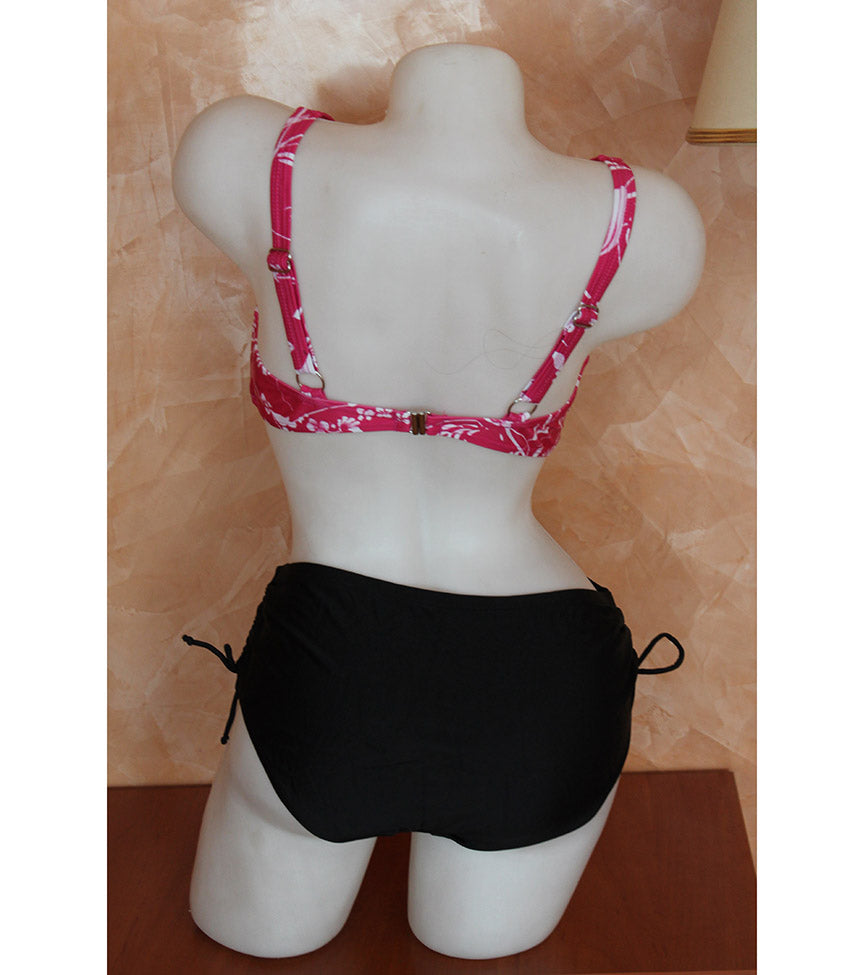 Дамски бански в две части 1887. Горнище с меки чаши и лека подложка, която може да се маха. Отзад е със закопчаване. Дълбоко долнище с връзки отстрани.