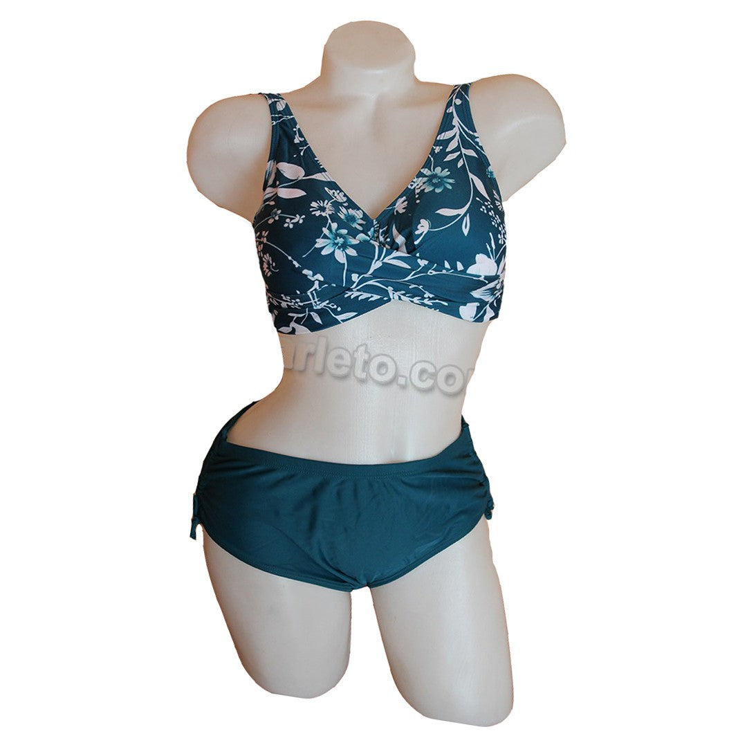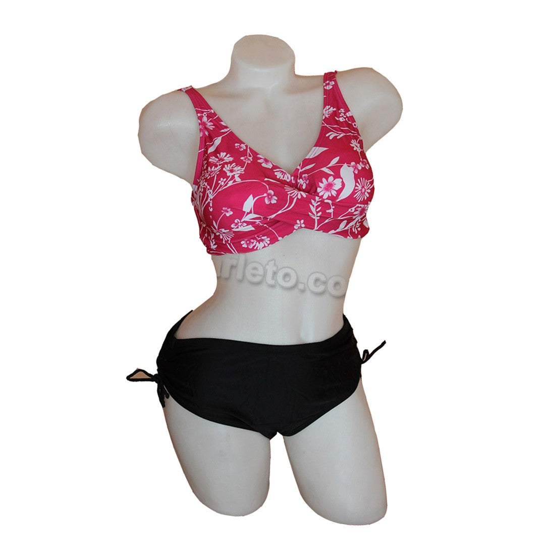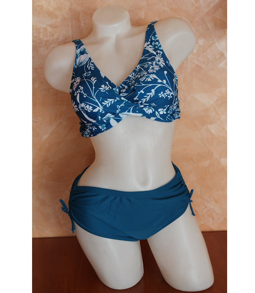 Дамски бански в две части 1887. Горнище с меки чаши и лека подложка, която може да се маха. Отзад е със закопчаване. Дълбоко долнище с връзки отстрани.