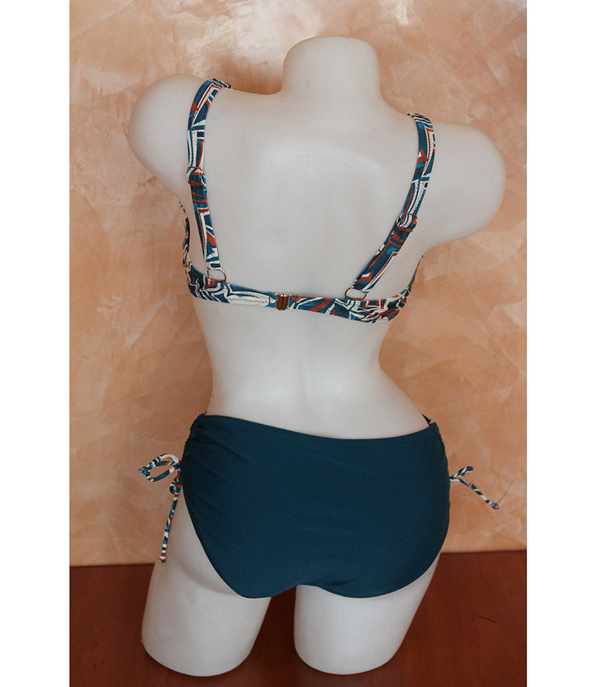 Дамски бански в две части 86019. Горнище с меки чаши и лека подложка. Отзад е със закопчаване. Дълбоко класическо долнище.