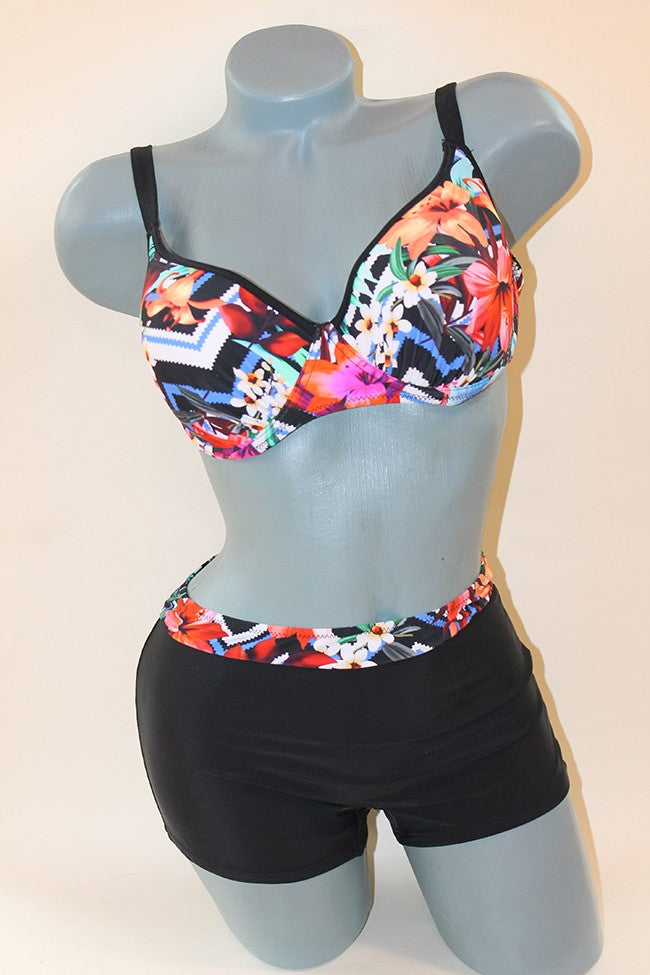 Дамски бански в две части с боксер Косара 1. Горнище със оформена чаша и банели. Долна част тип боксер.