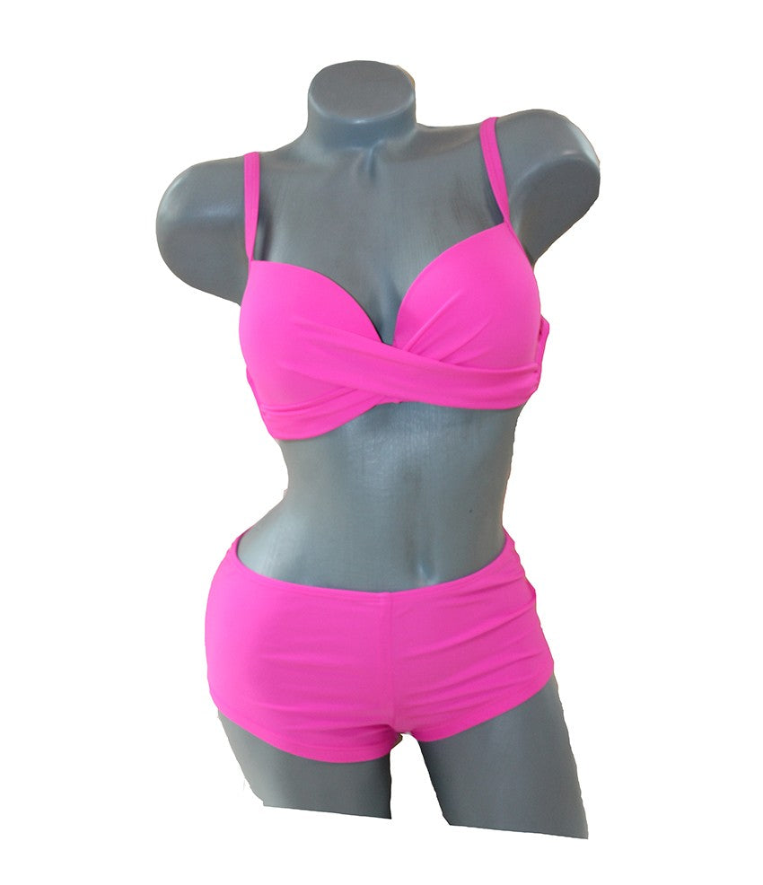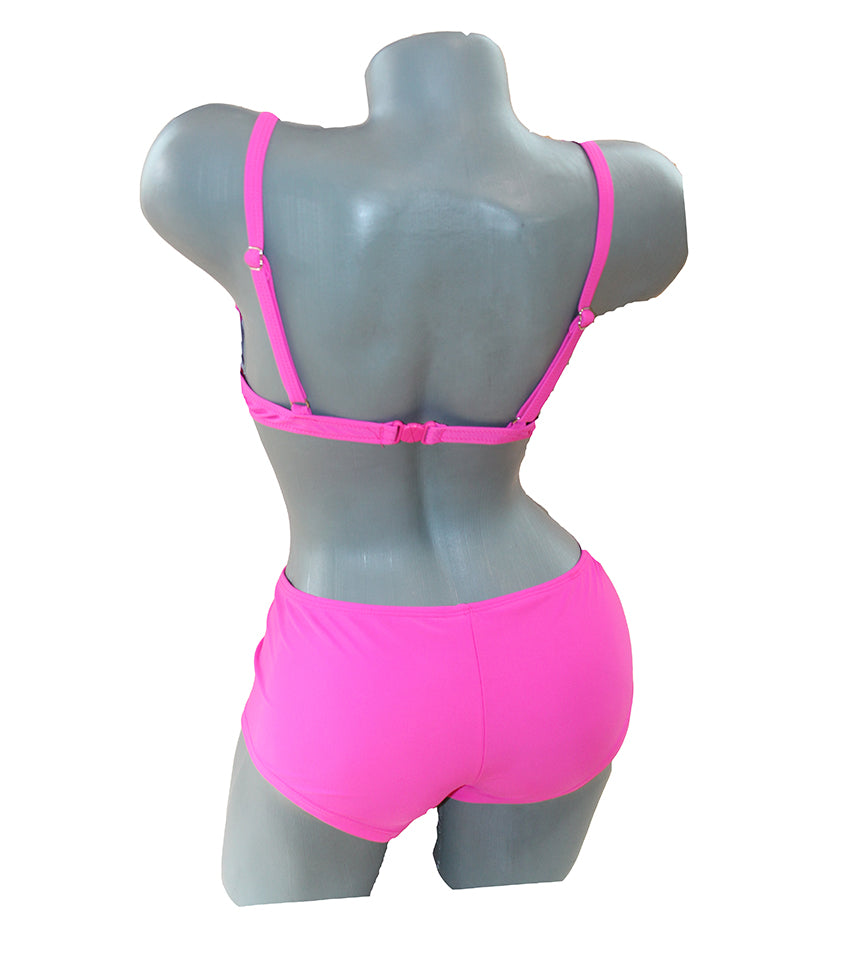 Дамски бански в две части с боксер Пинк. Горнище с оформена чаша и банели. Долнище тип боксер. Бански в цикламен цвят.