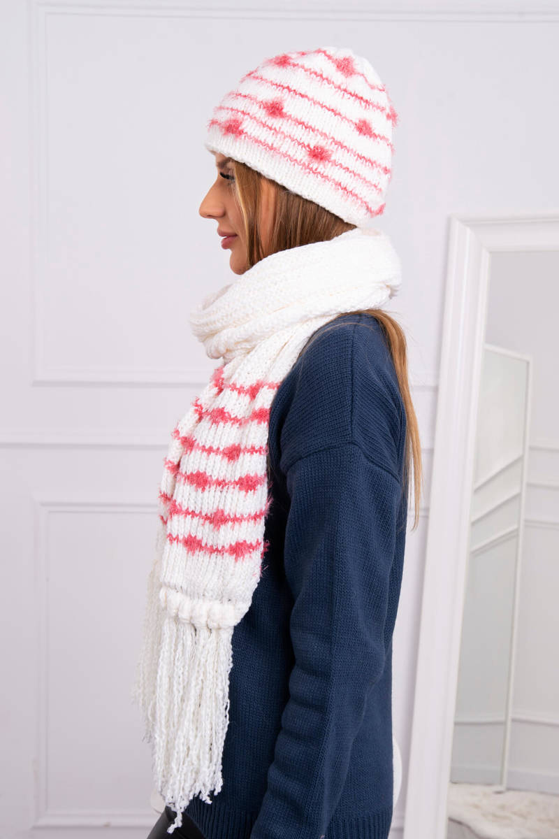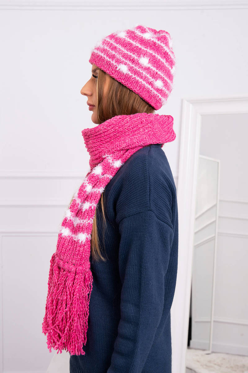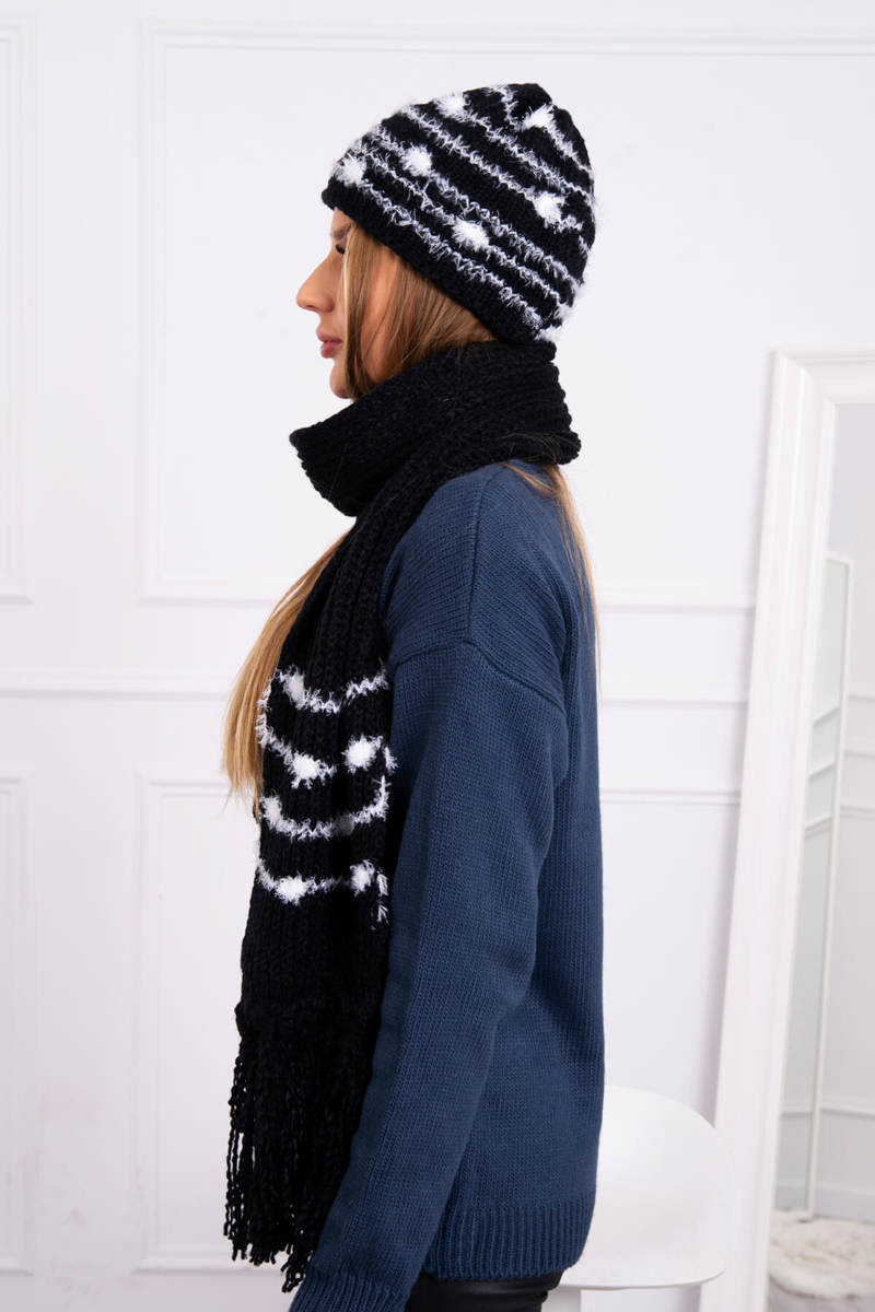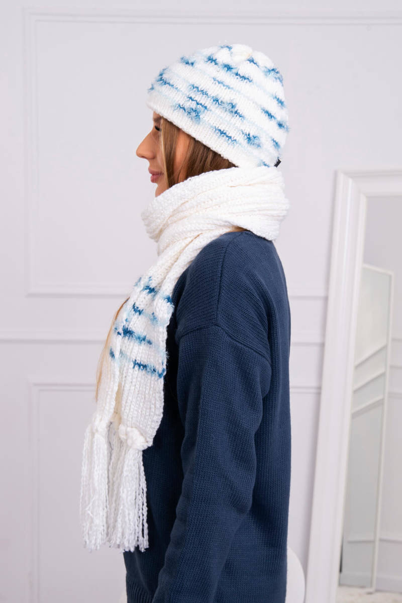 Предлагаме ви топъл комплект, състоящ се от шапка и шал. Комплектът се отличава с атрактивен външен вид и солидна изработка. Много красив десен ще направи комплекта модерен и практичен аксесоар за много сезони. Размерът на шапката и шала е универсален.