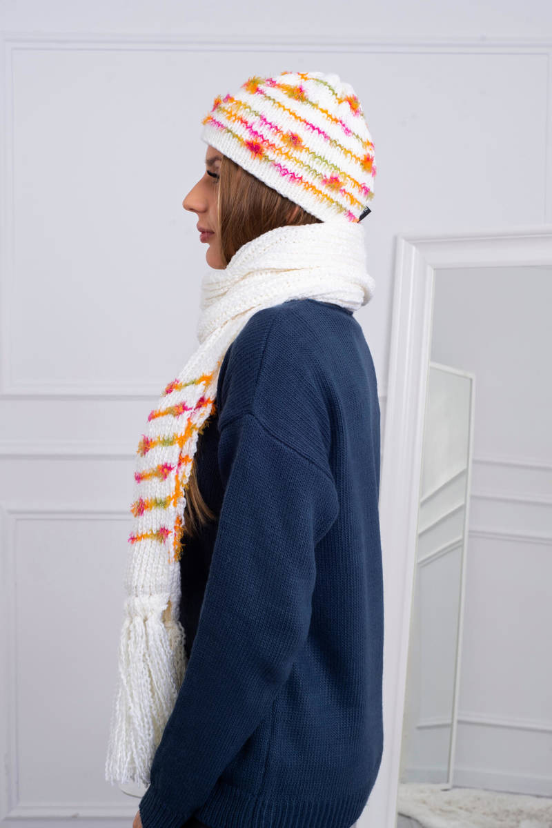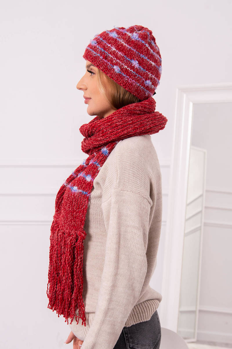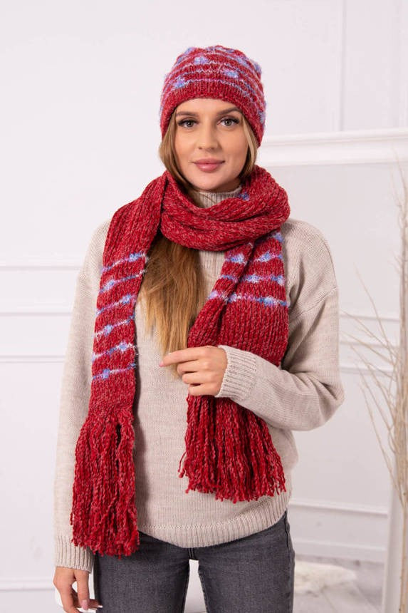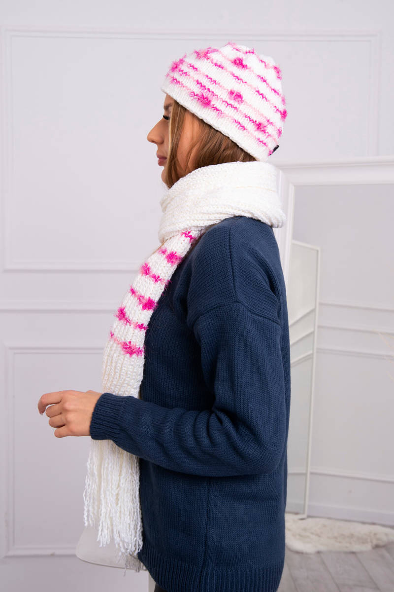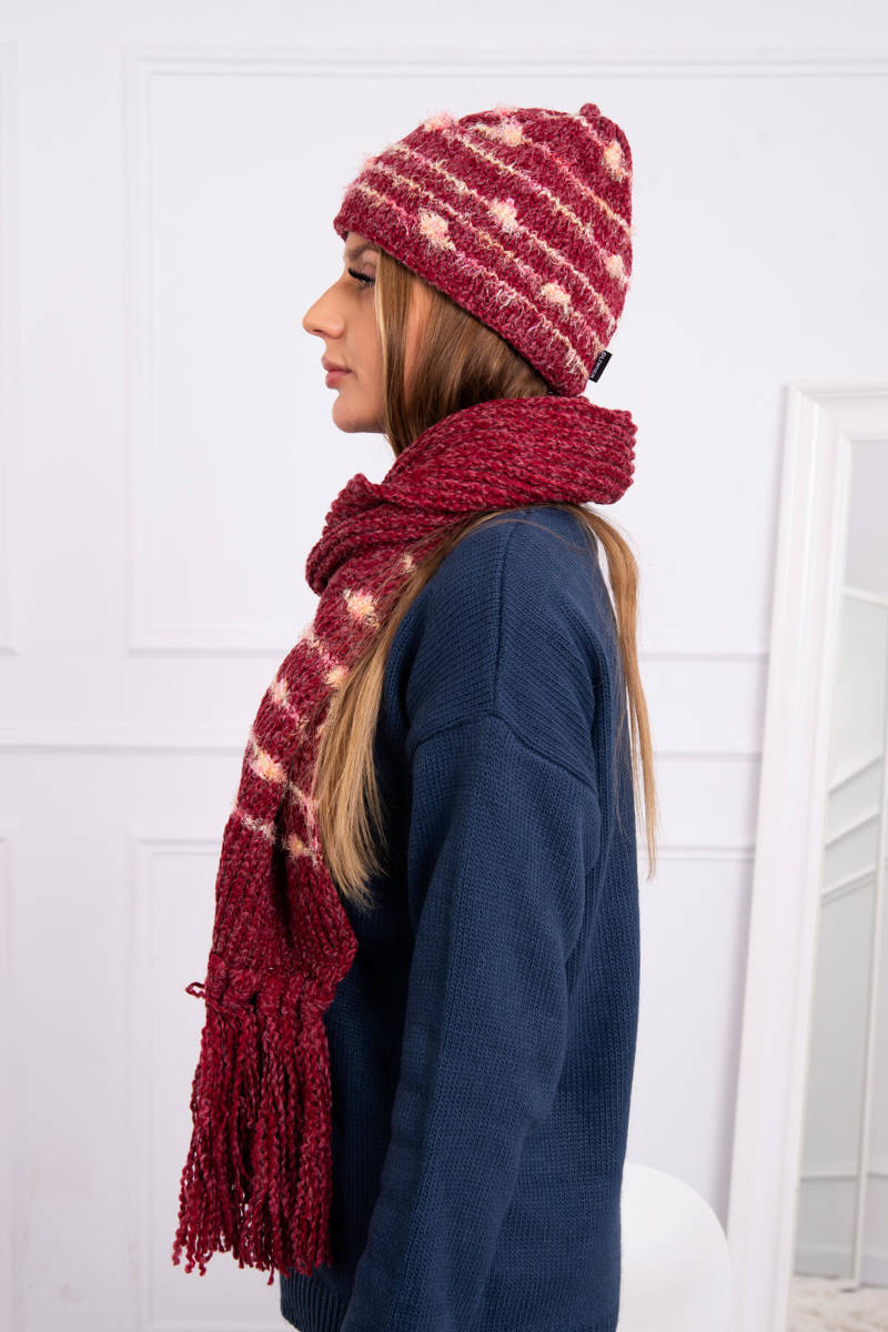 Предлагаме ви топъл комплект, състоящ се от шапка и шал. Комплектът се отличава с атрактивен външен вид и солидна изработка. Много красив десен ще направи комплекта модерен и практичен аксесоар за много сезони. Размерът на шапката и шала е универсален.