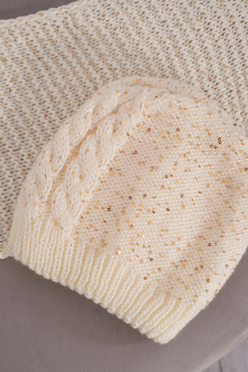 Предлагаме ви топъл комплект, състоящ се от шапка и шал. Комплектът се отличава с атрактивен външен вид и солидна изработка. Много красив десен ще направи комплекта модерен и практичен аксесоар за много сезони. Размерът на шапката и шала е универсален.