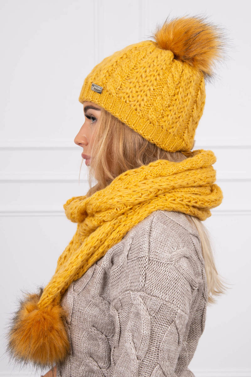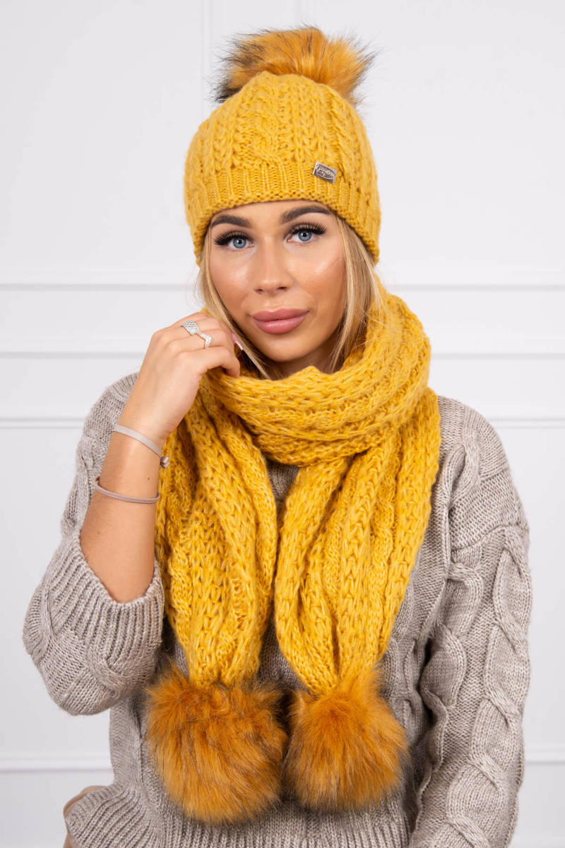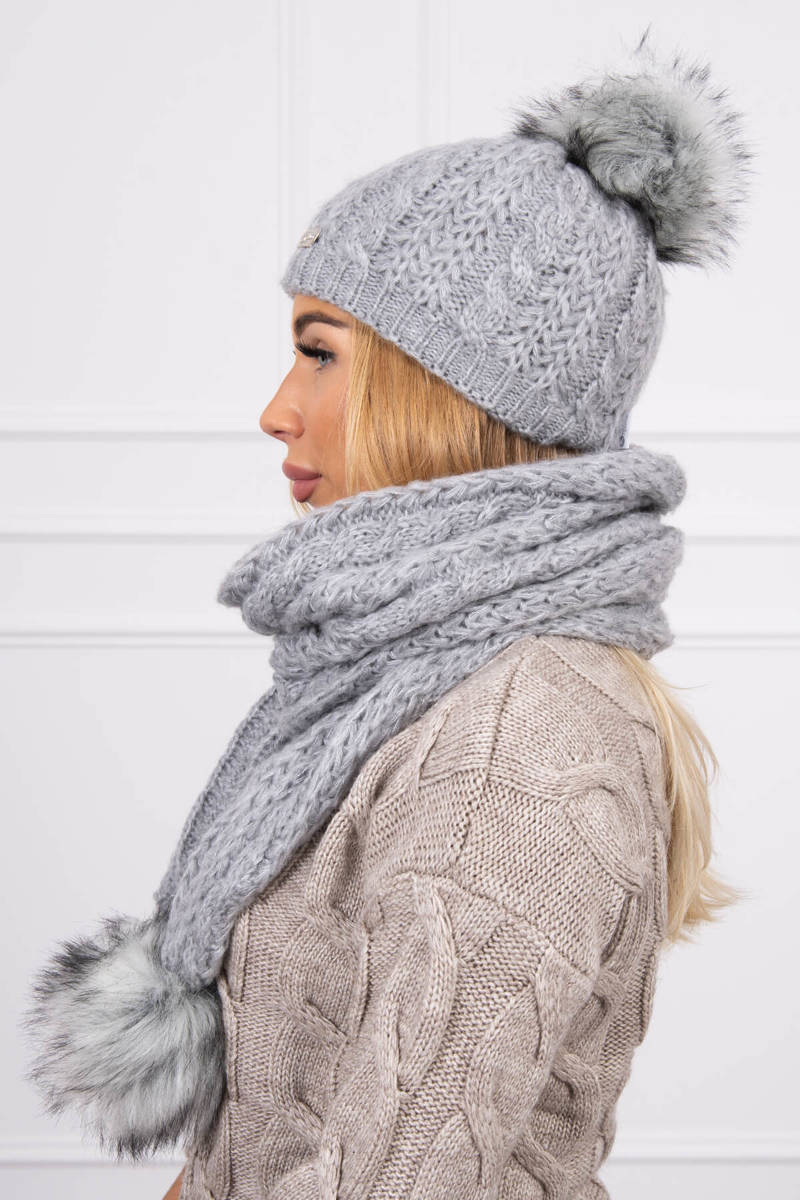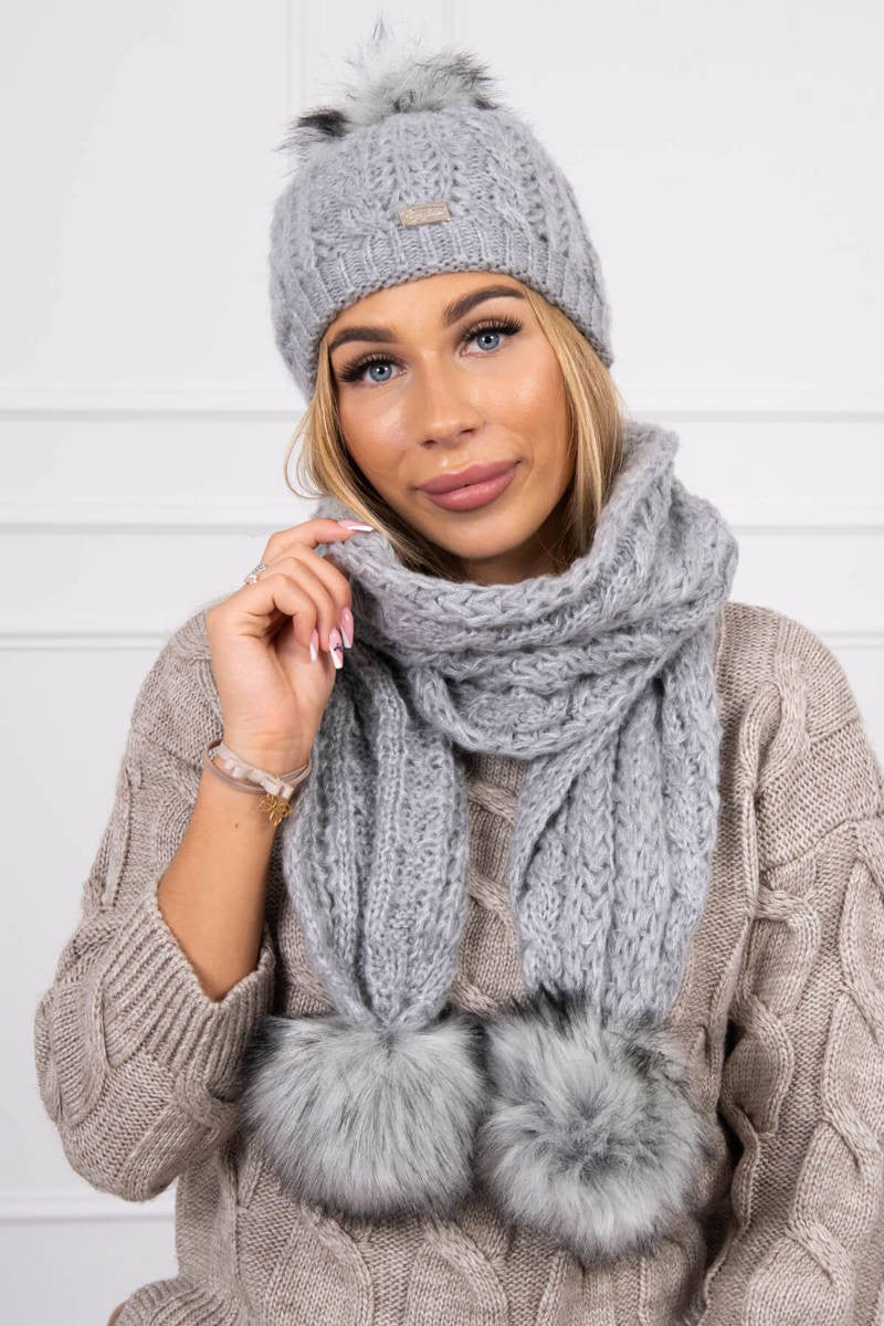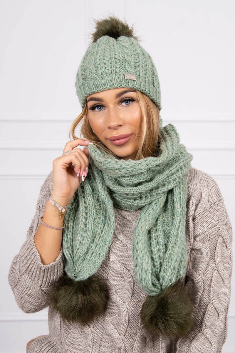 Предлагаме топъл комплект, състоящ се от шапка и шал. Шапката е подплатена с полар. Шапката и шалът са завършени с елегантен пискюл. Комплектът се отличава с атрактивен външен вид и солидна изработка. Много красив десен ще направи комплекта модерен и практичен аксесоар за много сезони. Цветът на помпоните може да се различава от показаните на снимките. Размерът на шапката и шала е универсален.