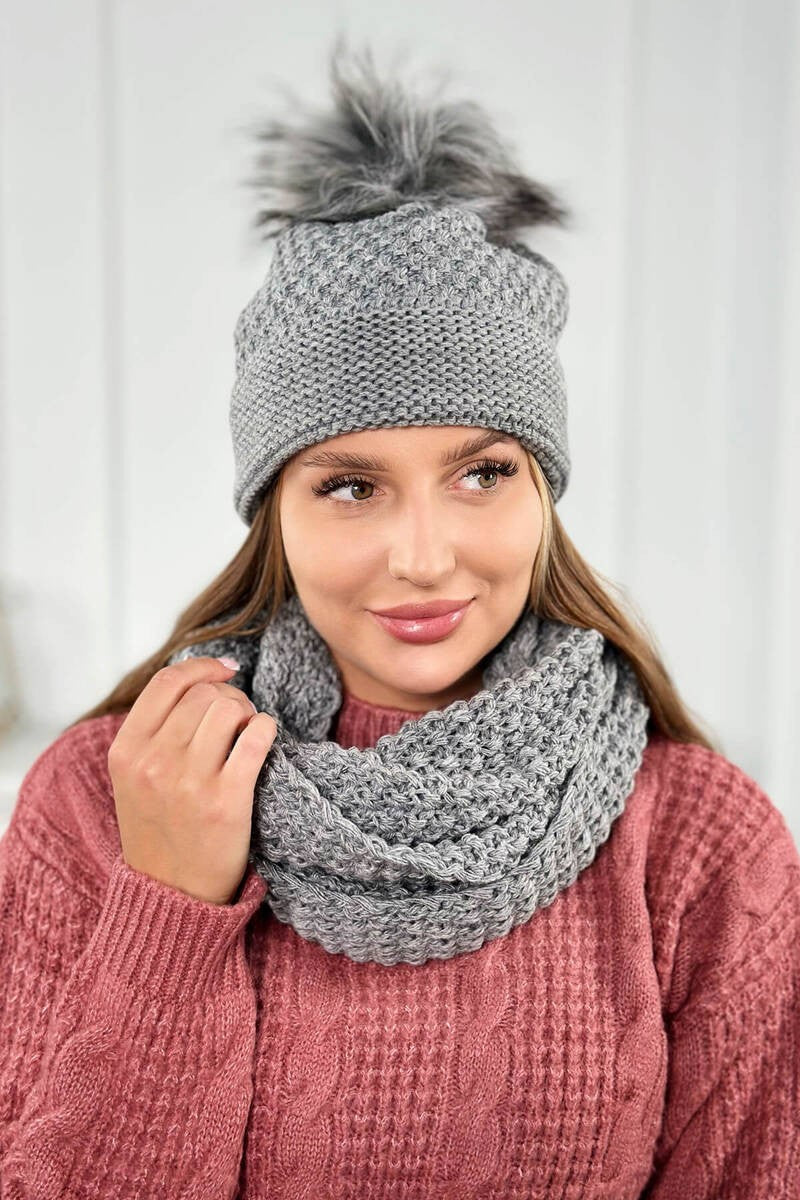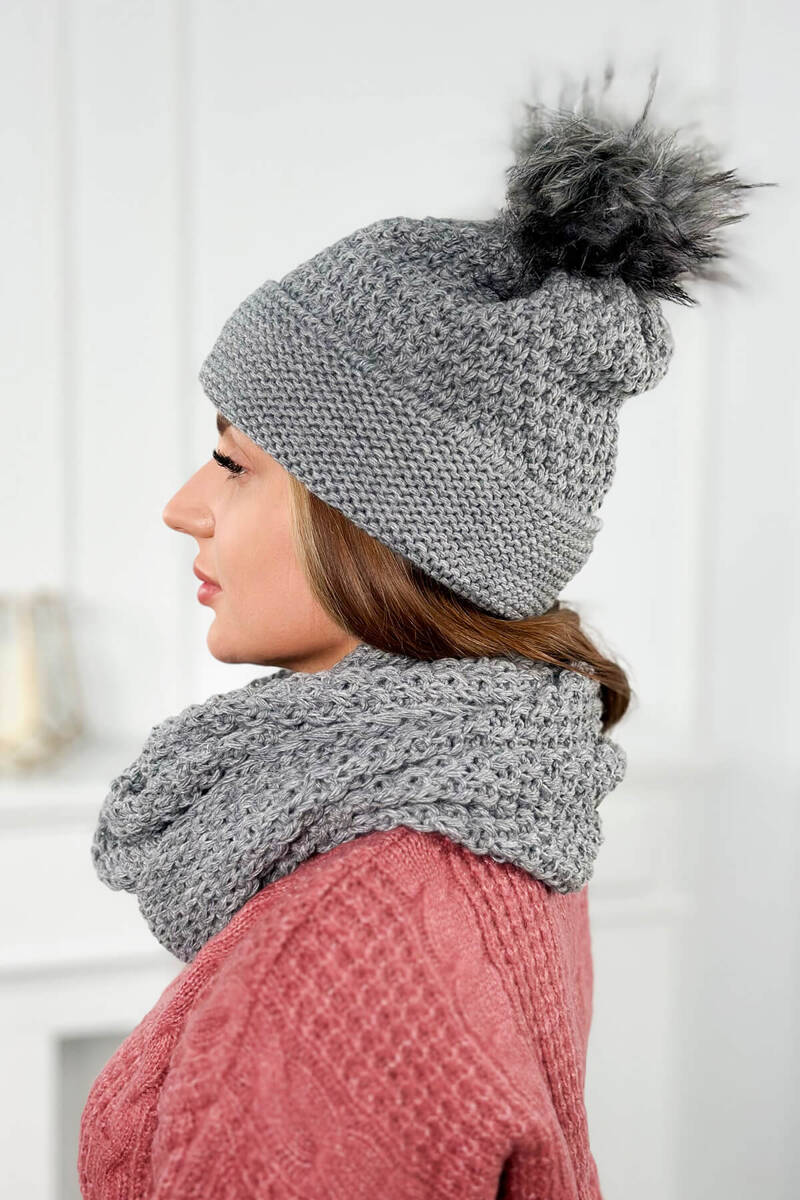 Полският зимен комплект е незаменим елемент от вашия гардероб в студените дни. Шапка с помпон и подходящ шал са не само практични аксесоари, но и модерен аксесоар, който идеално се вписва в характерната атмосфера на полската зима. Шапка с помпон, изработена от мек материал, не само поддържа главата ви топла, но и добавя чар и радост. Подходящият комин има не само отоплителна функция, но и допълва цялата композиция. Неговата текстура и шарка хармонират с шапката, създавайки последователен комплект. Шалът, увит около врата, дава усещане за комфорт и защита срещу замръзване, като в същото време подчертава личния стил на този, който го носи. Този комплект перфектно отразява духа на полската зима – радостен, пълен с топлина и традиция. Независимо от възрастта или повода, шапка с помпон и шал са перфектна екипировка за зимни разходки, каране на шейни или вечерни срещи на топъл чай. Това са не само дрехи, но и малки произведения на изкуството, които предизвикват усмивки на лицата както на тези, които ги носят, така и на тези, които ги гледат. Размерът на шапката е универсален, шапката е подплатена с полар.