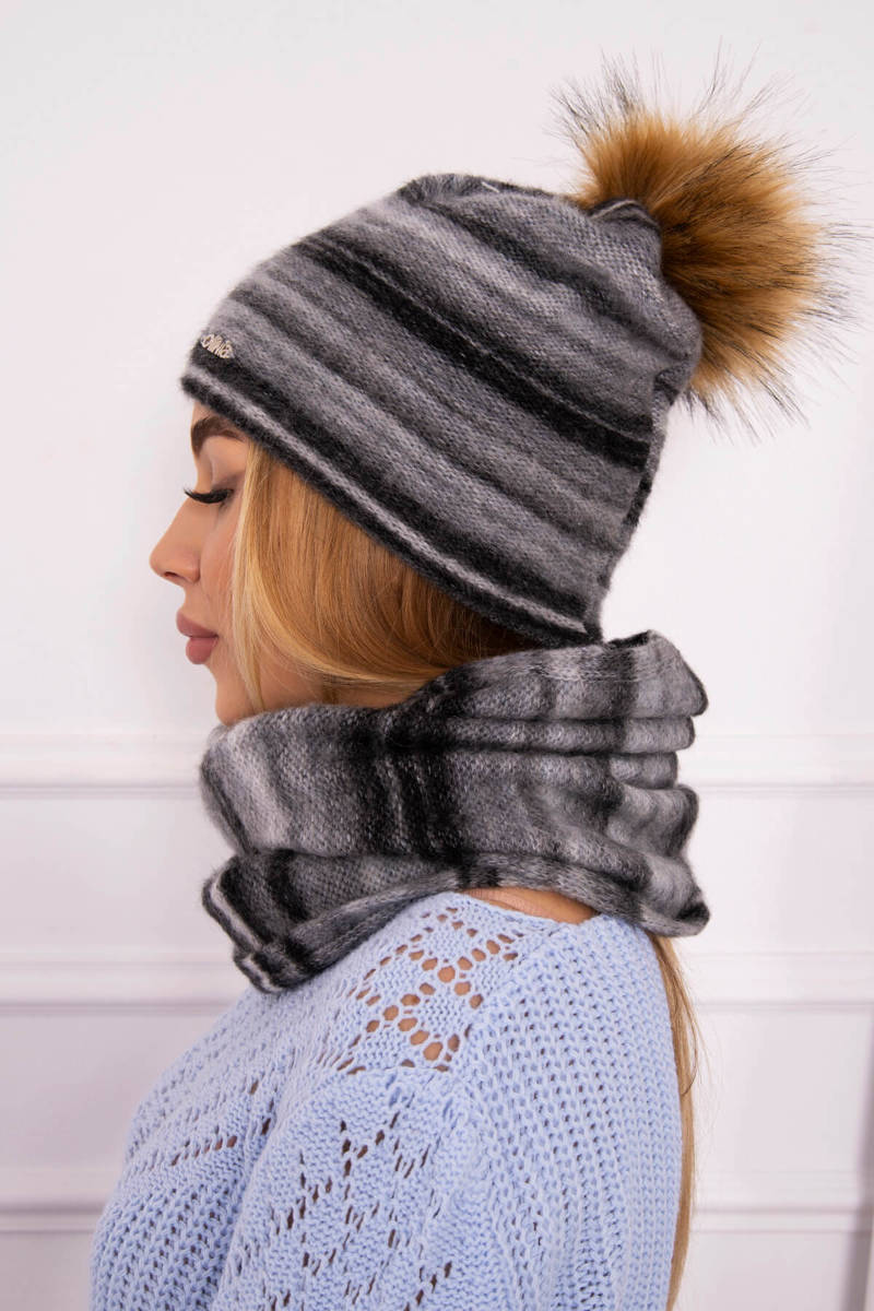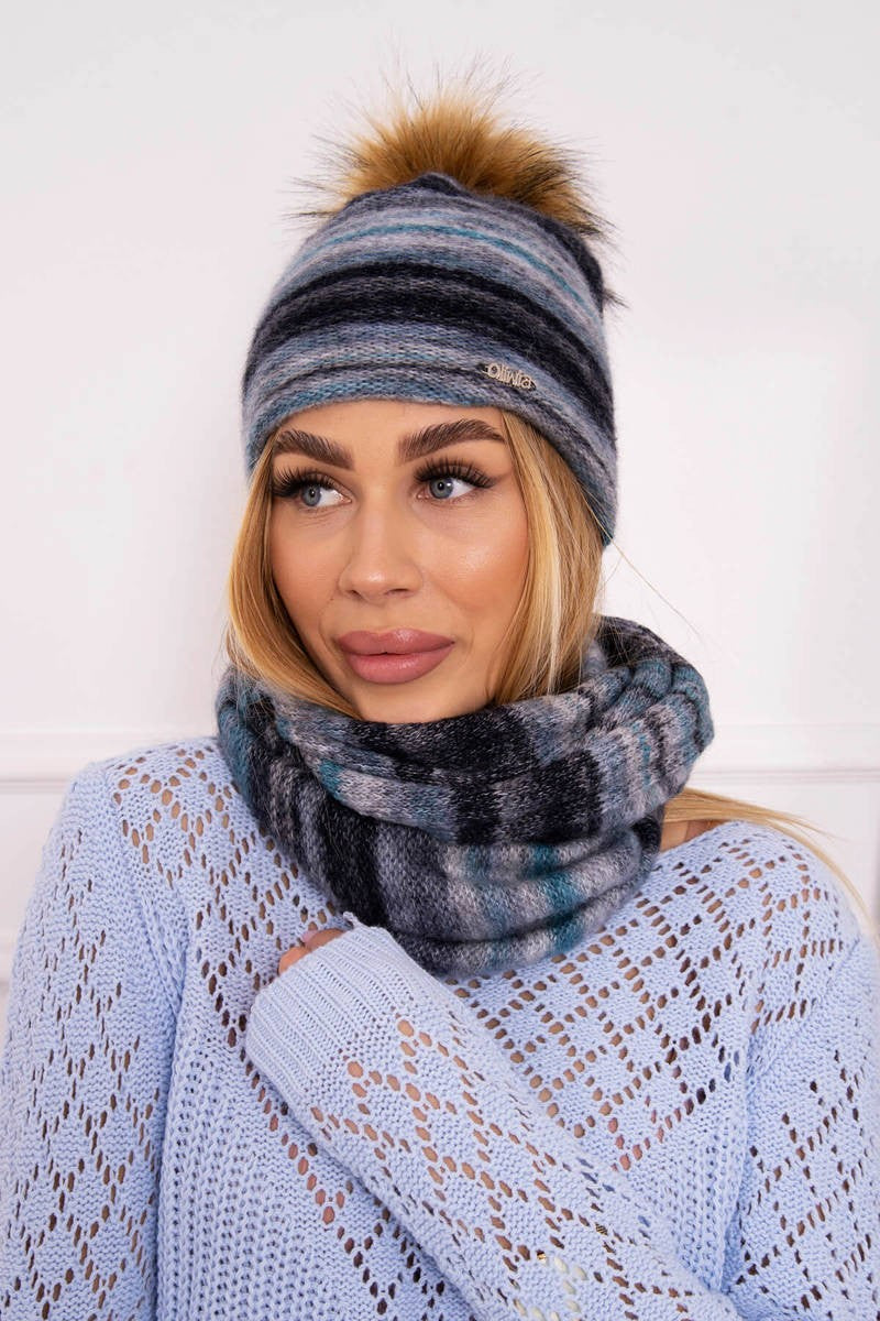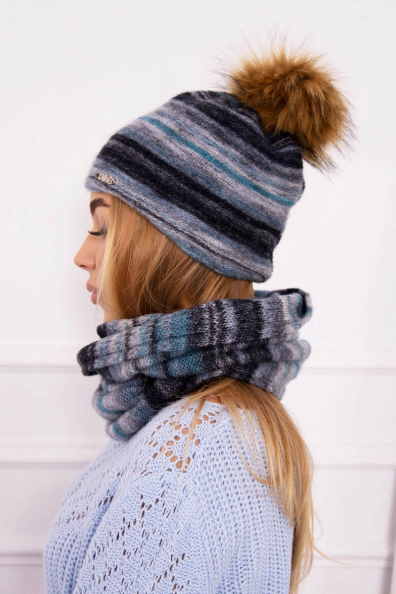 Предлагаме Ви топъл комплект, състоящ се от шапка и качулка. Шапка с помпон. Комплектът се отличава с атрактивен външен вид и солидна изработка. Много красив десен ще направи комплекта модерен и практичен аксесоар за много сезони. Размерът на шапката и капака е универсален.