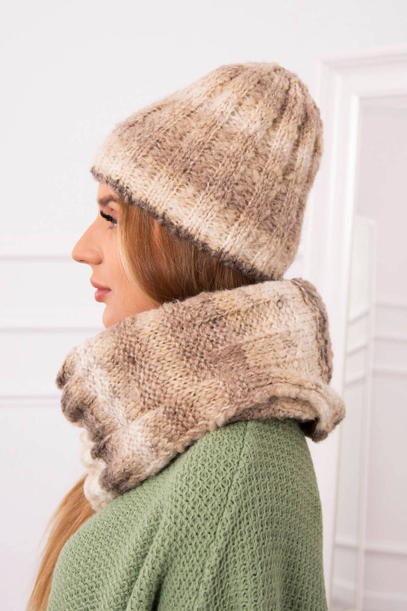 Предлагаме Ви топъл комплект, състоящ се от шапка и качулка. Комплектът се отличава с атрактивен външен вид и солидна изработка. Много красив десен ще направи комплекта модерен и практичен аксесоар за много сезони. Размерът на шапката и капака е универсален.