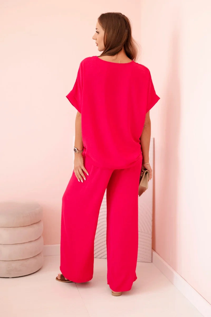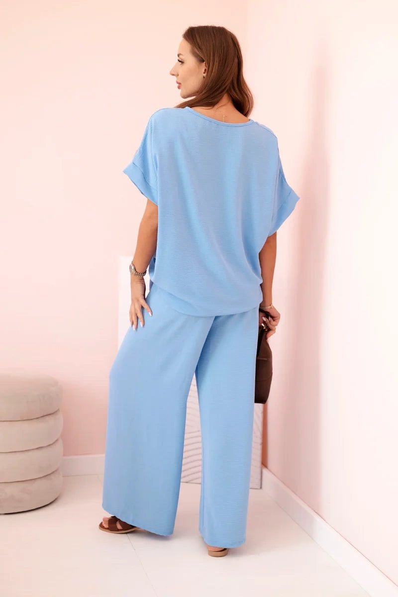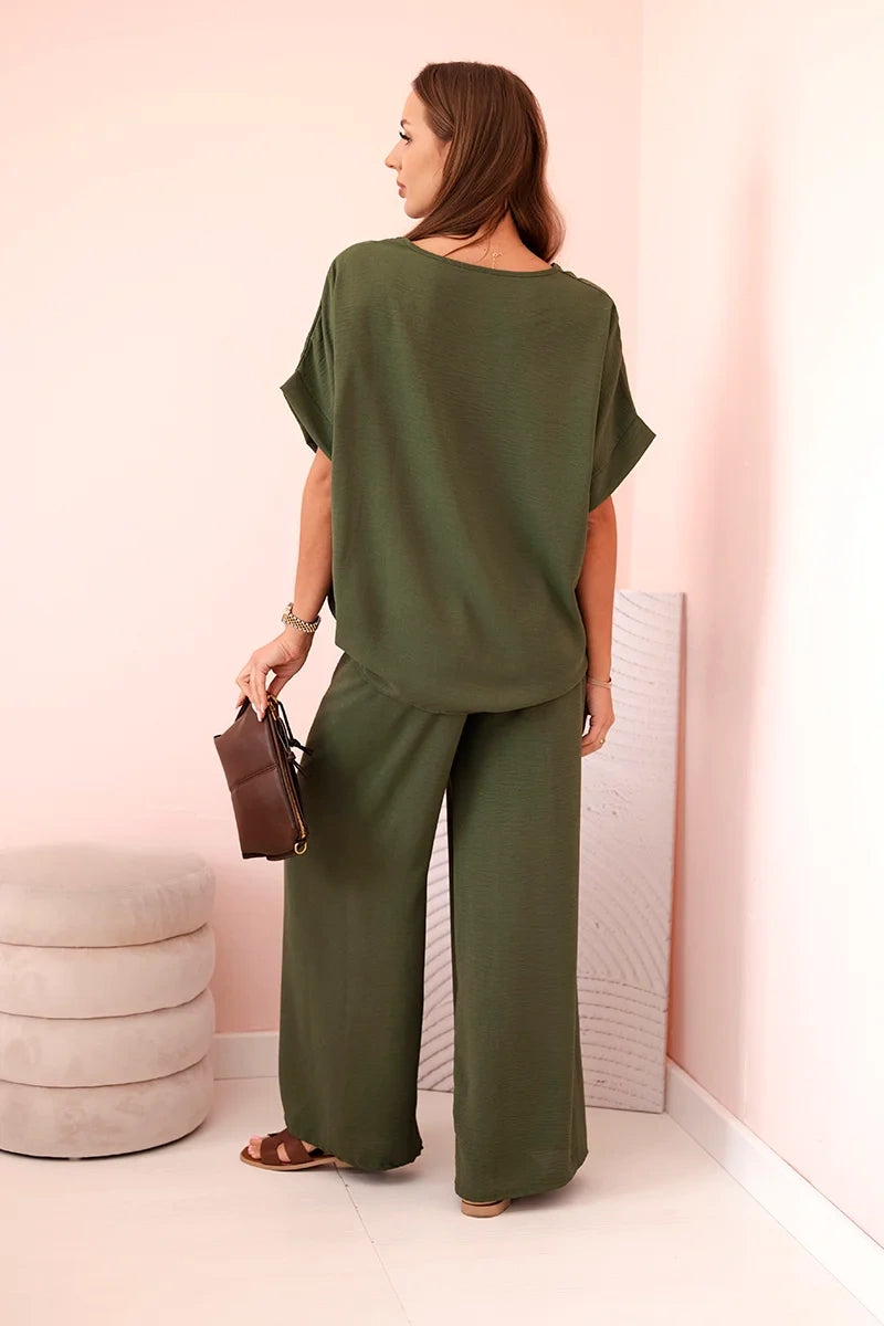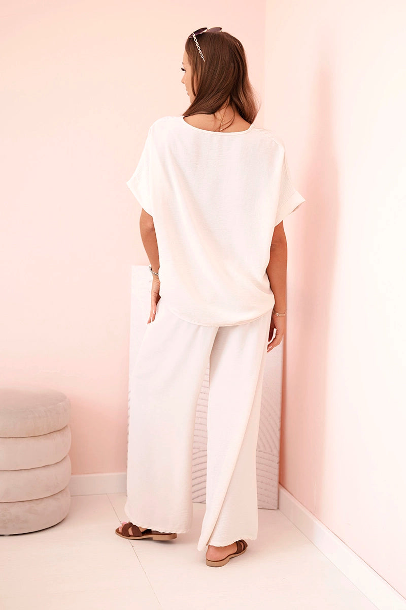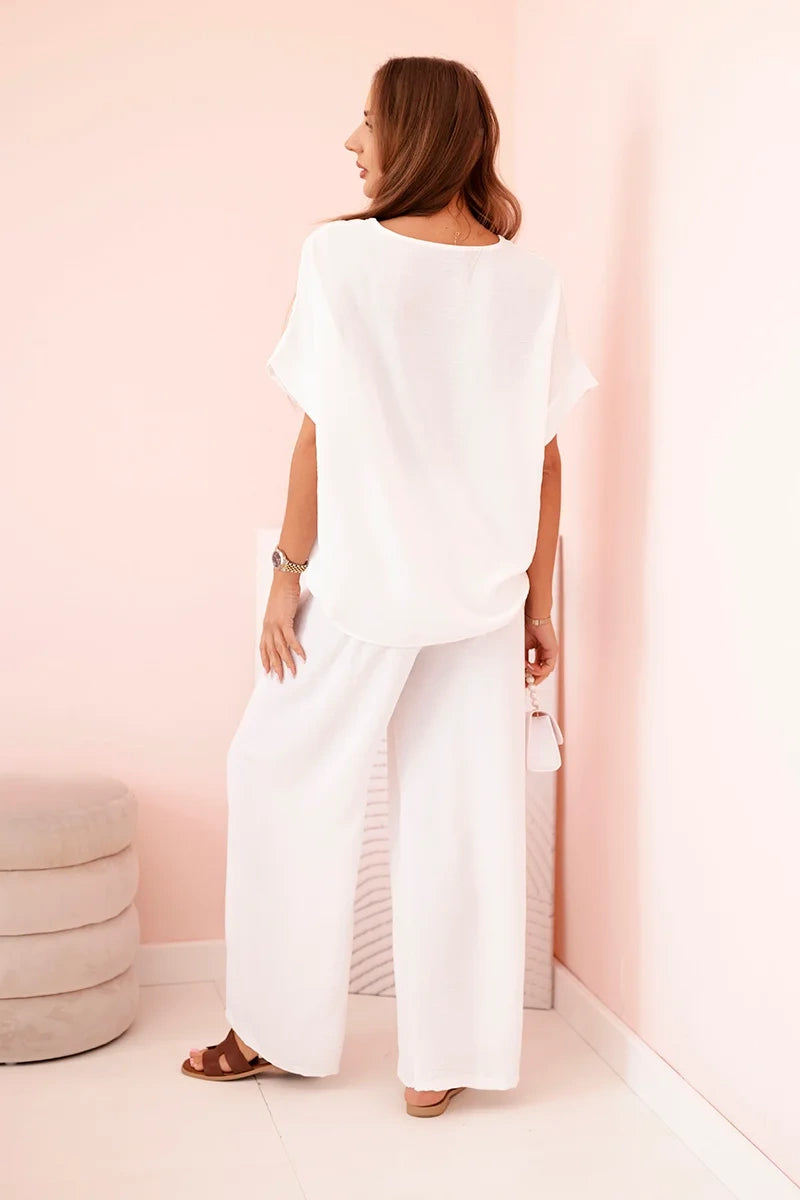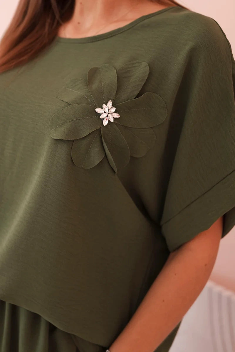 Дамски комплект от вискоза с декоративно цвете и широк панталон ART0109