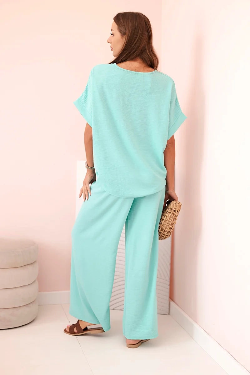 Дамски комплект от вискоза с декоративно цвете и широк панталон ART0109.