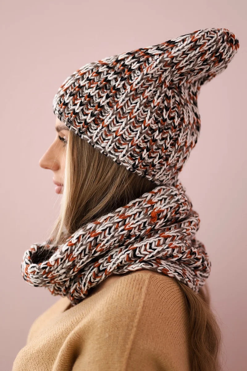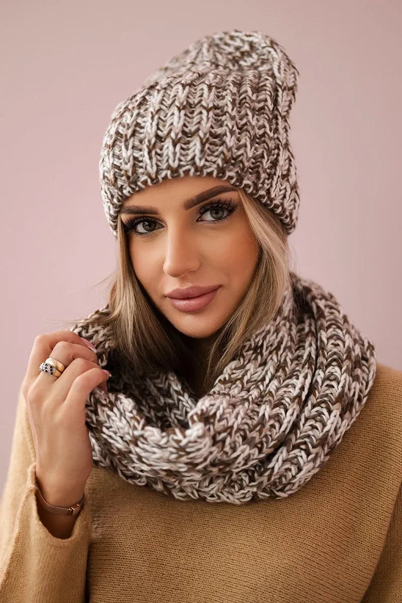 Предлагаме Ви топъл комплект, състоящ се от шапка и качулка. Комплектът се отличава с атрактивен външен вид и солидна изработка. Много красив десен ще направи комплекта модерен и практичен аксесоар за много сезони. Размерът на шапката и капака е универсален.