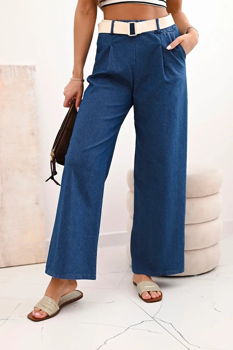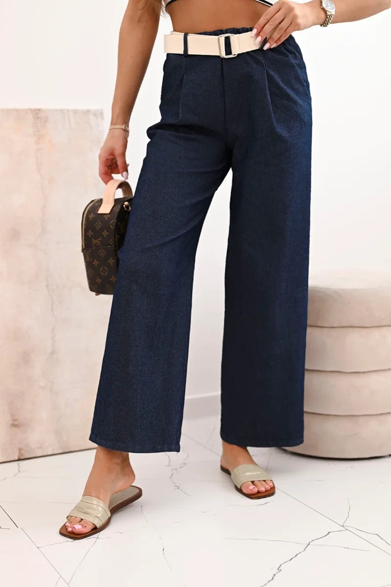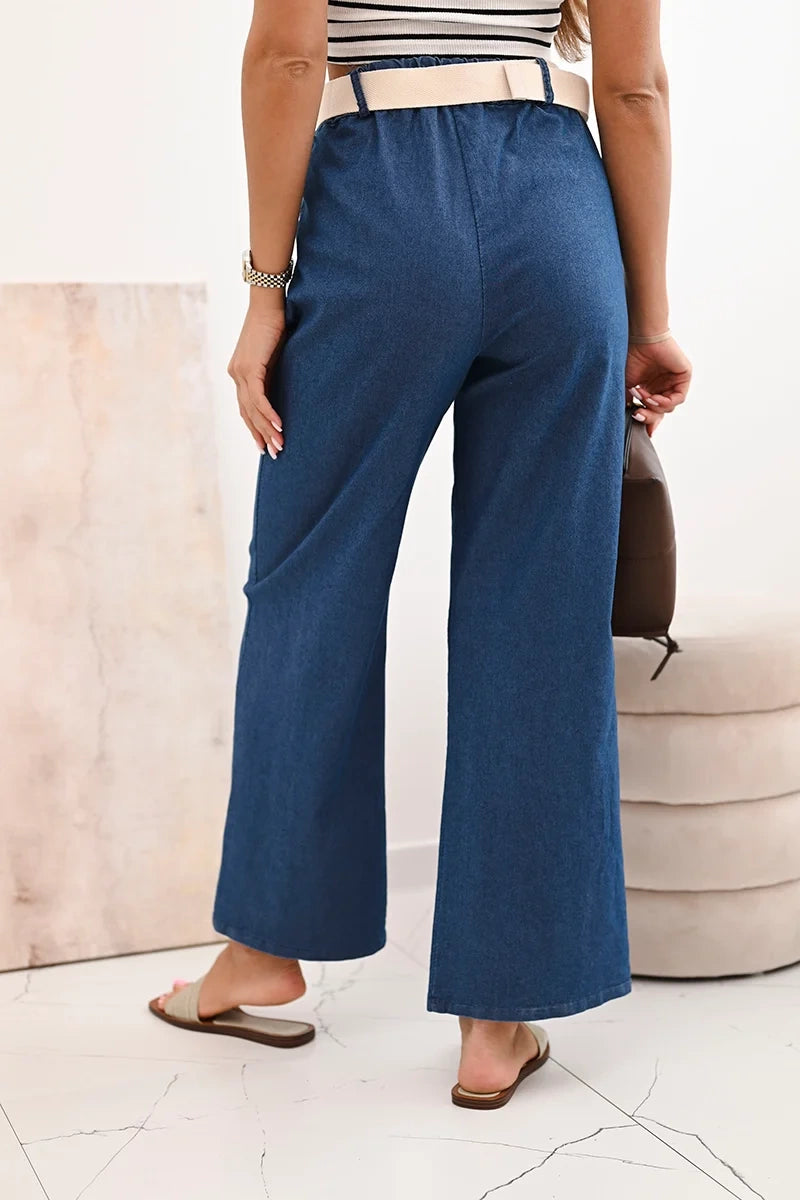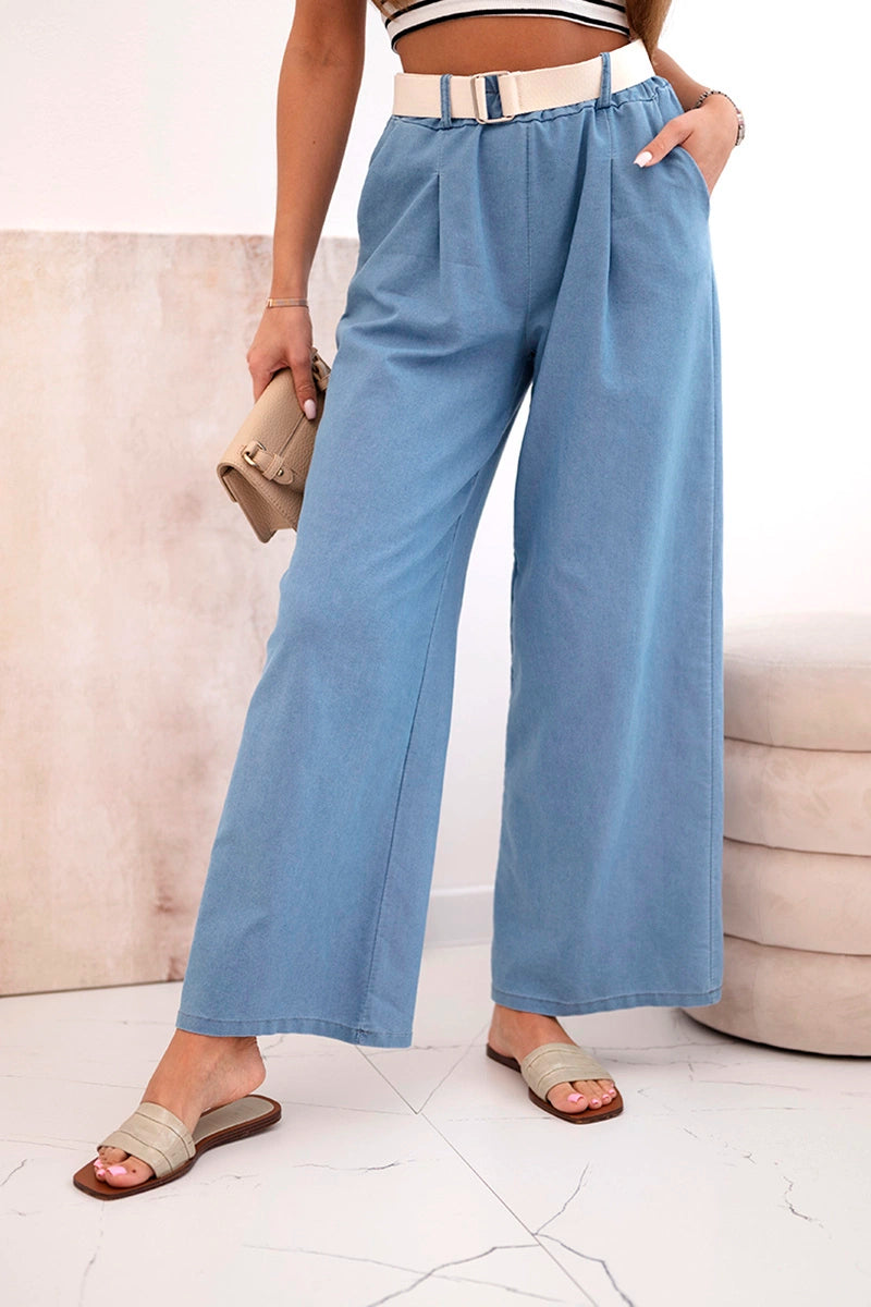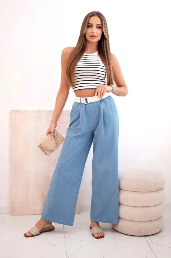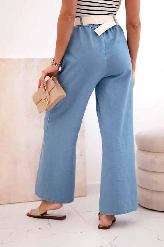 Дамски памучен панталон с широки крачоли и колан ART9806