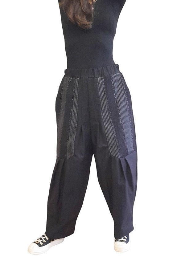 Дамски широк панталон Орбиана. Широк панталон с ластик на талията и интересна шарка отпред.