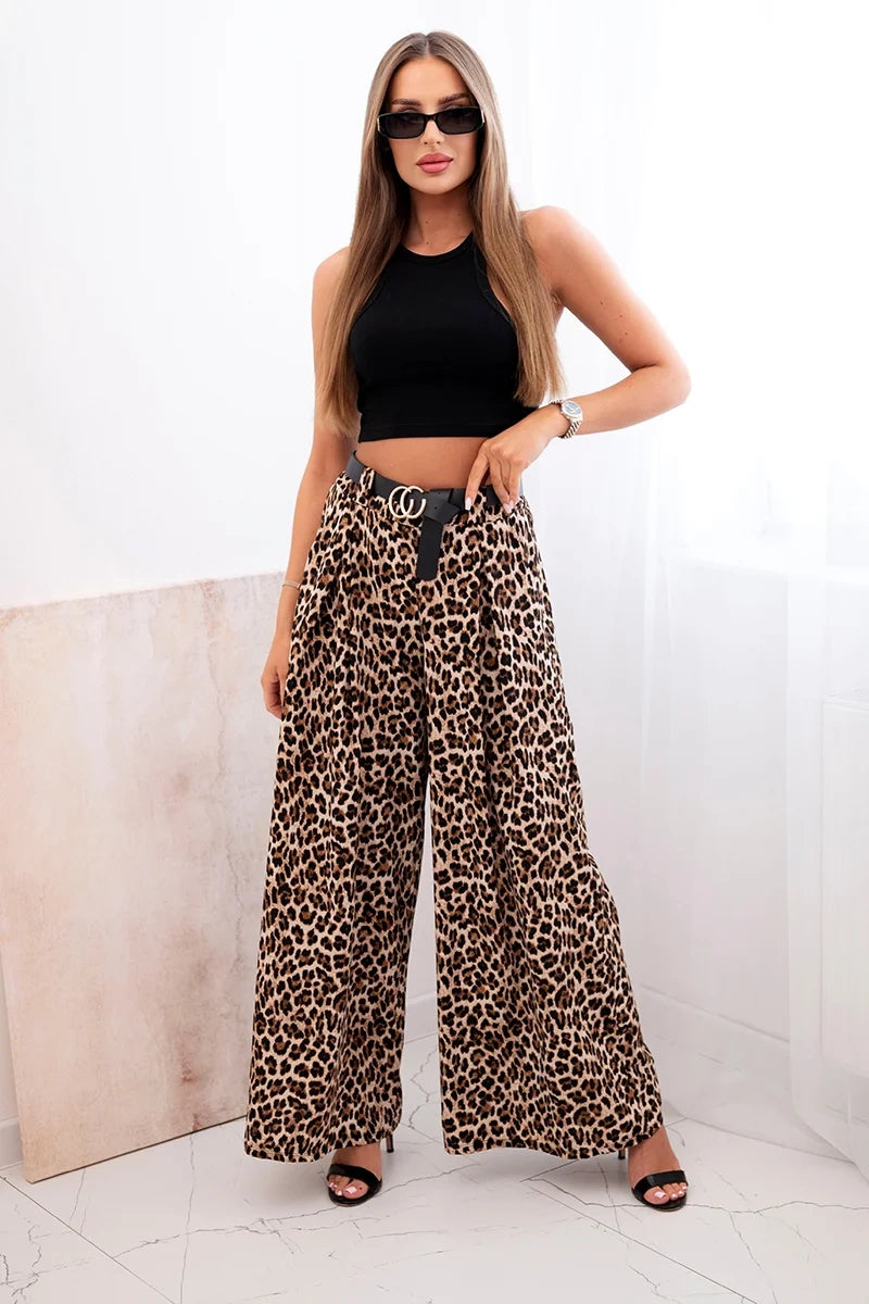 Дамски широк панталон с леопардов принт и ластик на талията ART5259.