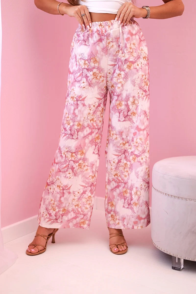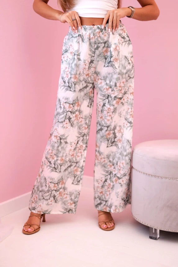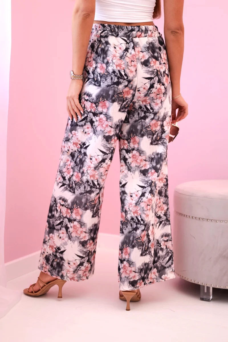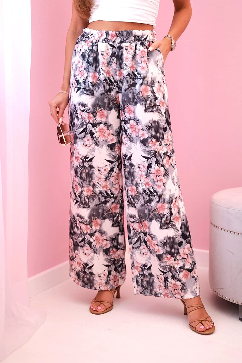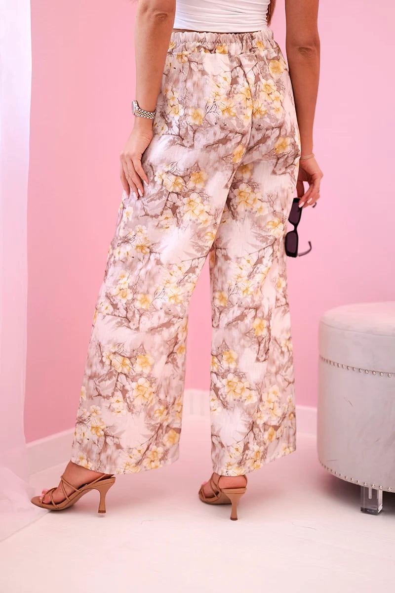 Дамски широки панталони с флорален принт 5761