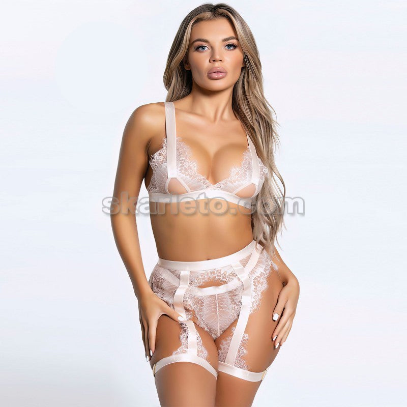 Дантелен бралет с прашки и жартиери 3388. Дамски комплект от бралет сутиен с прашки и жартиери. Комплект от 3 части (сутиен + прашки + жартиери ).