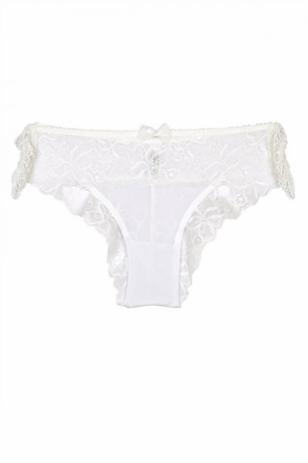 Дантелени бразилки бикини 1546, изработени от качествена мека материя. Модела е с ефектни странични ресни. Предлага се в черно и бяло.
