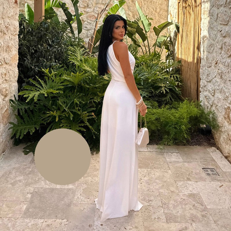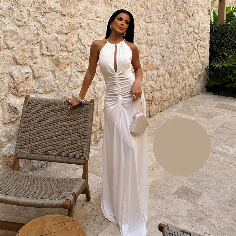 Дълга бяла рокля с голи рамена EO-0993. Секси рокля с голо рамо и отворено деколте. Мека и еластична материя и подплата в горната част на полата.