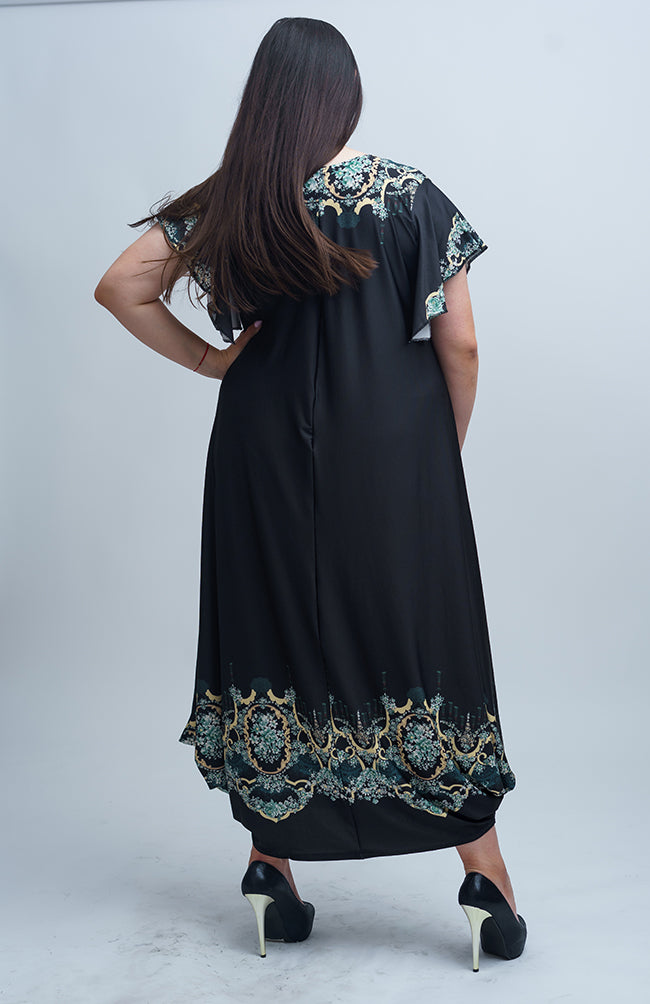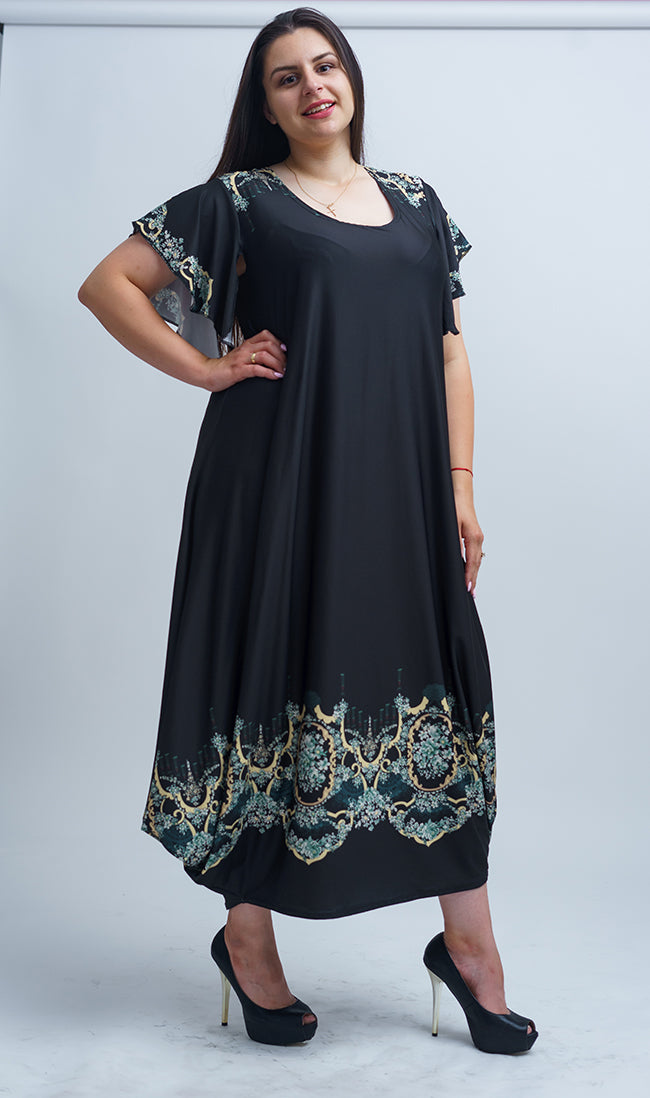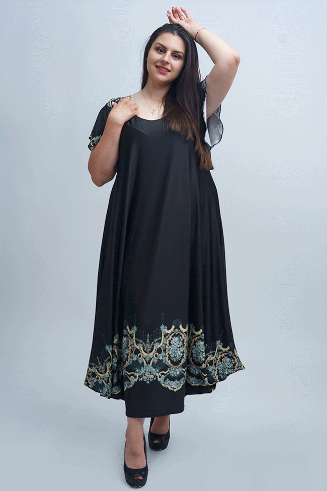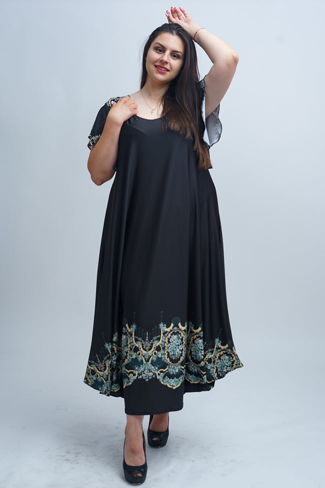 Дълга черна рокля с къс ръкав Оксана.Черна рокля свободно падаща по тялото с къс ръкав и обло деколте.