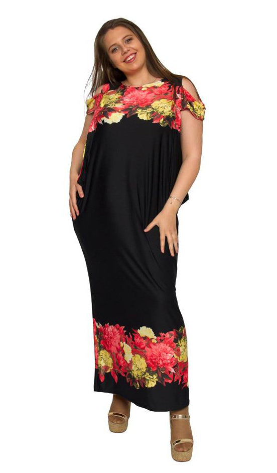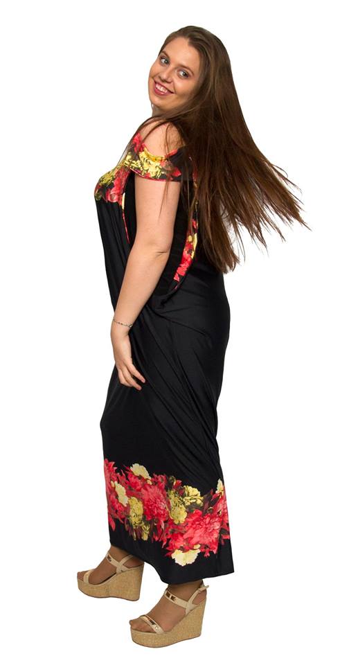 Дълга лятна рокля Джорджи в красив десен в черен цвят, украсен с нежни флорални мотиви.