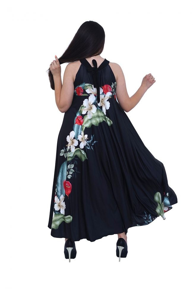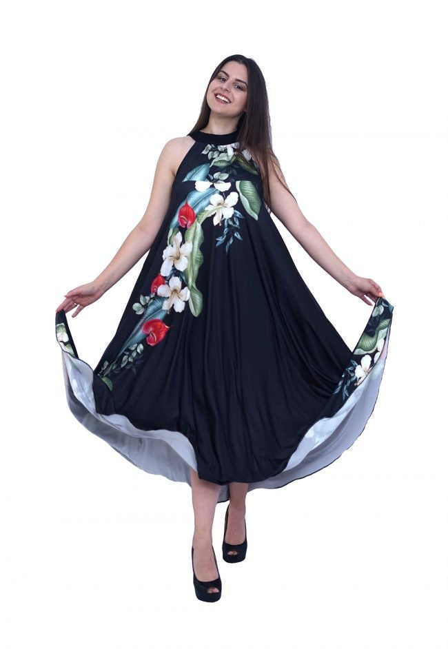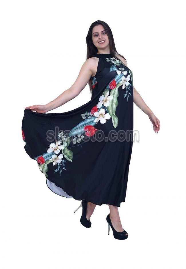 Дълга лятна рокля Нефи е модел в черно с красиви кали. Изработена е от качествена еластична материя. Кройка без ръкави , разкроена по дължината. Размери до 6ХЛ.