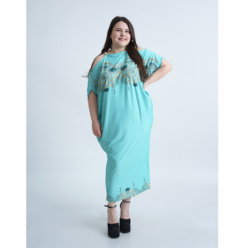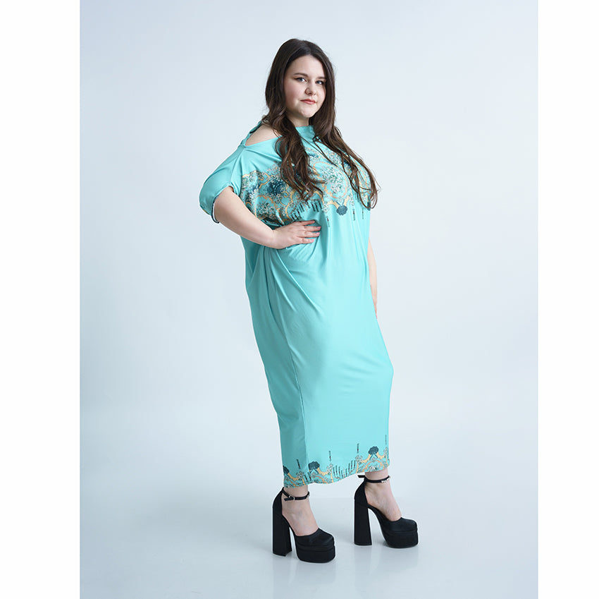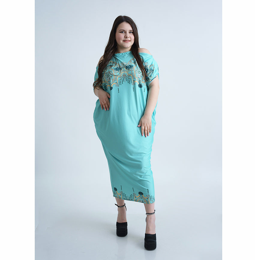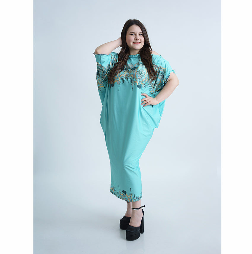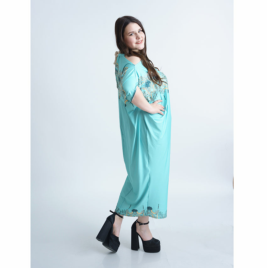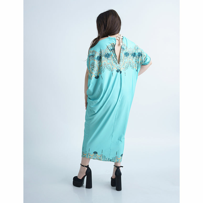 Дълга лятна рокля Молина. Красива рокля с прилеп ръкави в резедав цвят. Еластична материя. Завързване на врата.