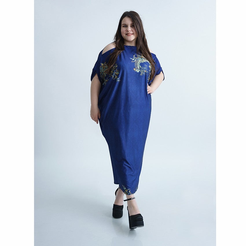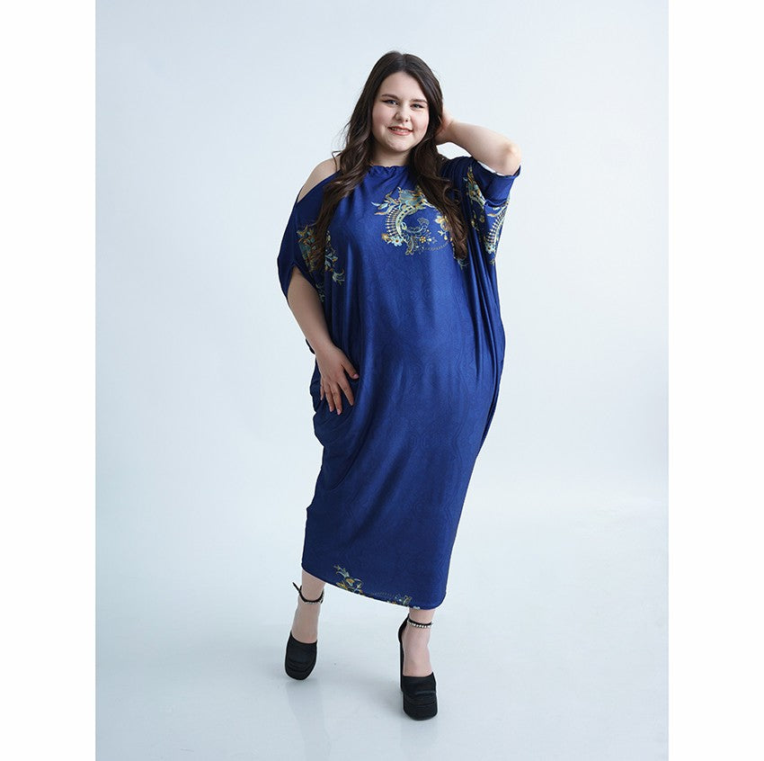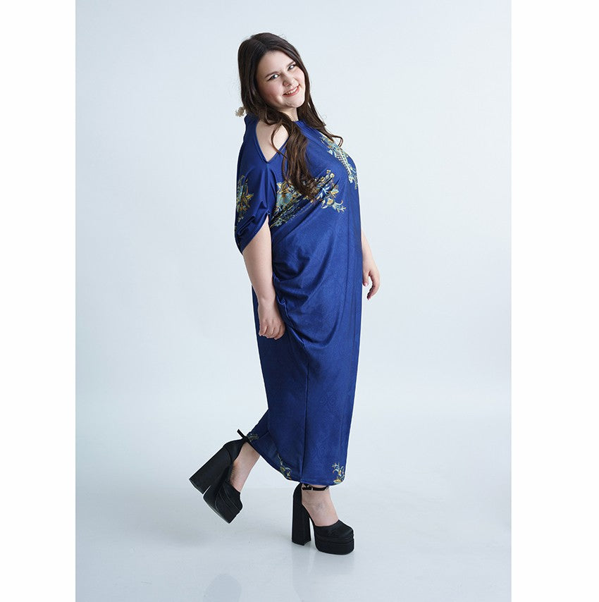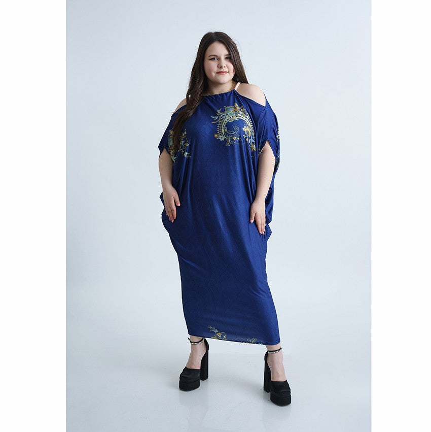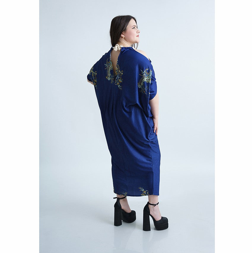Дълга лятна рокля Натали 1. Тъмно синя рокля от еластична материя с прилеп ръкави.